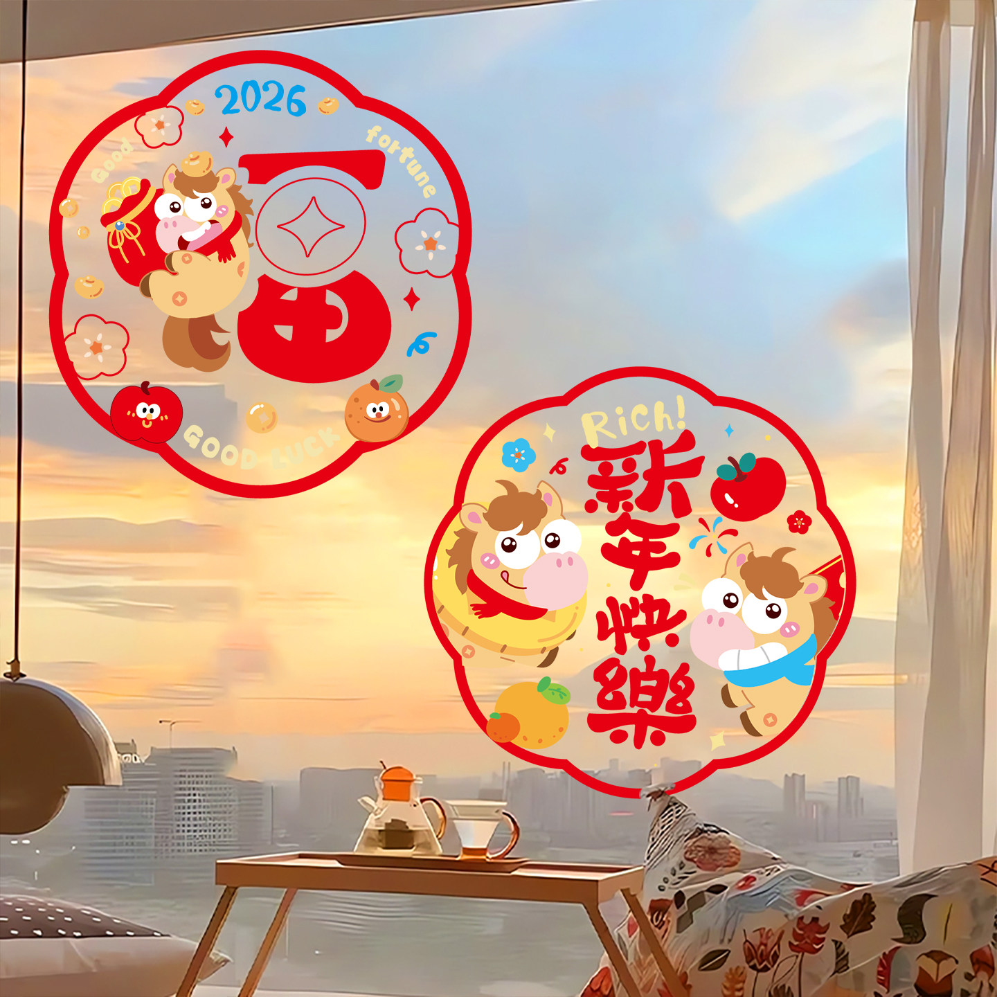 港苏马年新款玻璃窗贴