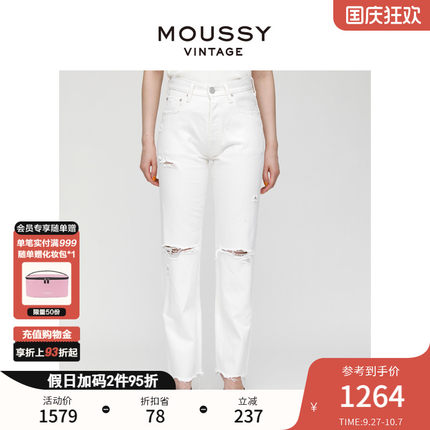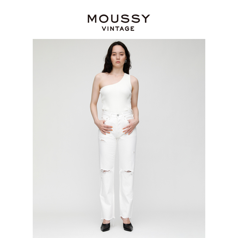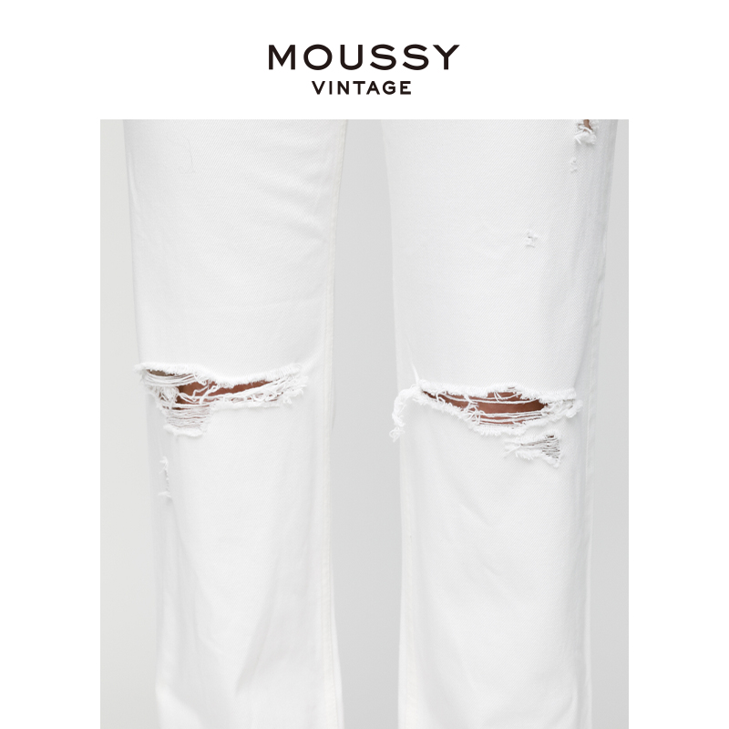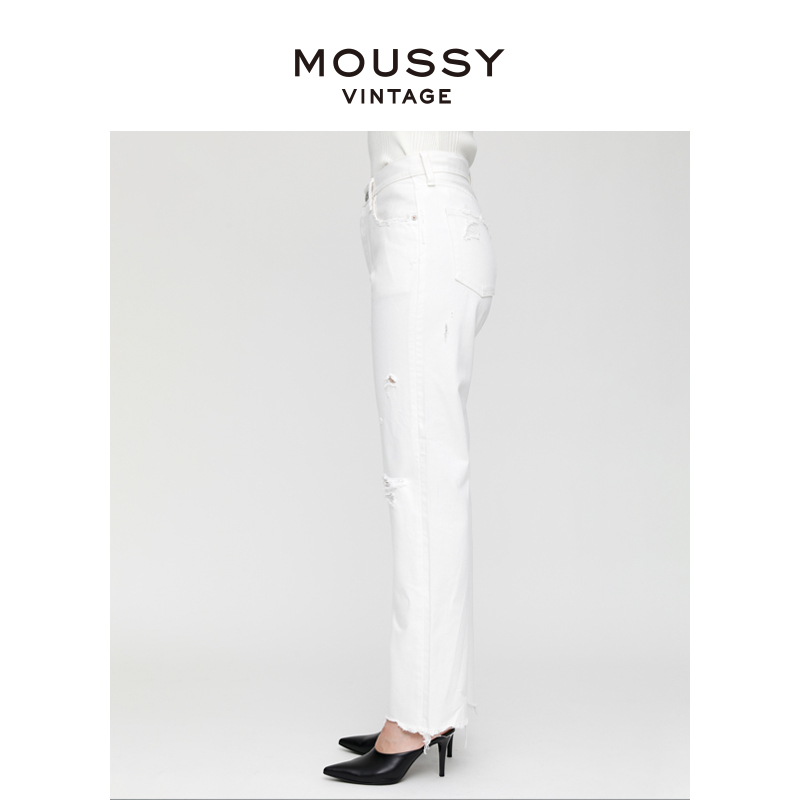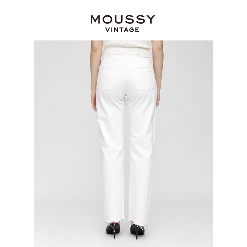 MOUSSY VINTAGE 春季高腰破洞裤脚毛边直筒牛仔裤女540FSC11-2130