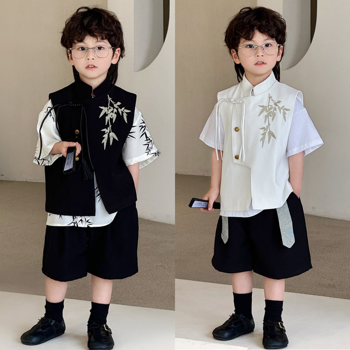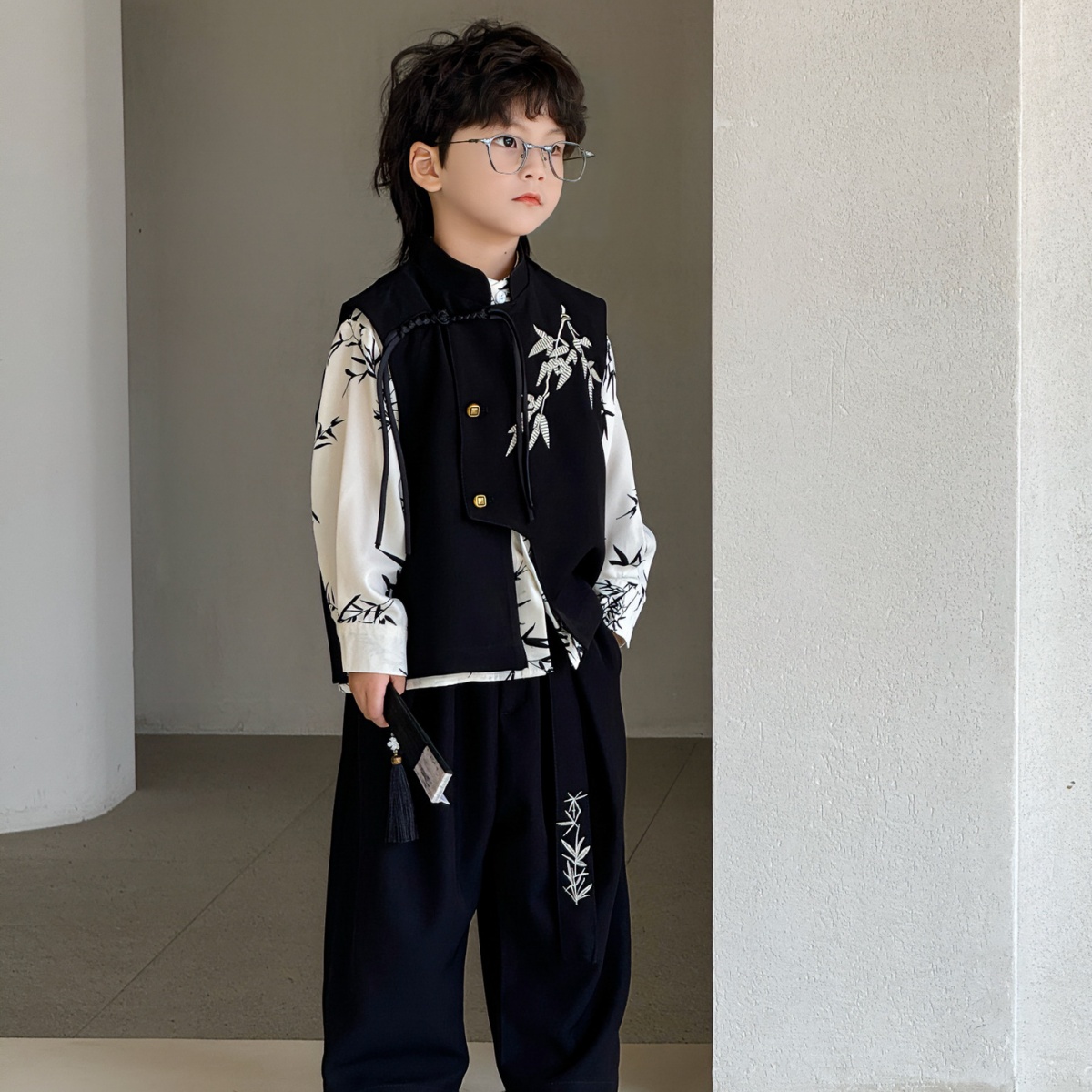 小男孩新中式国风童装中山装男童西装套装儿童男宝帅气礼服演出服