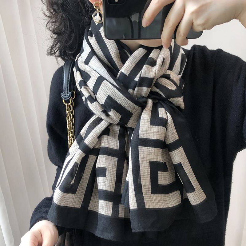 2025新款围巾女春秋百搭大格子撞色棉麻春秋披肩长款旅行防晒纱巾