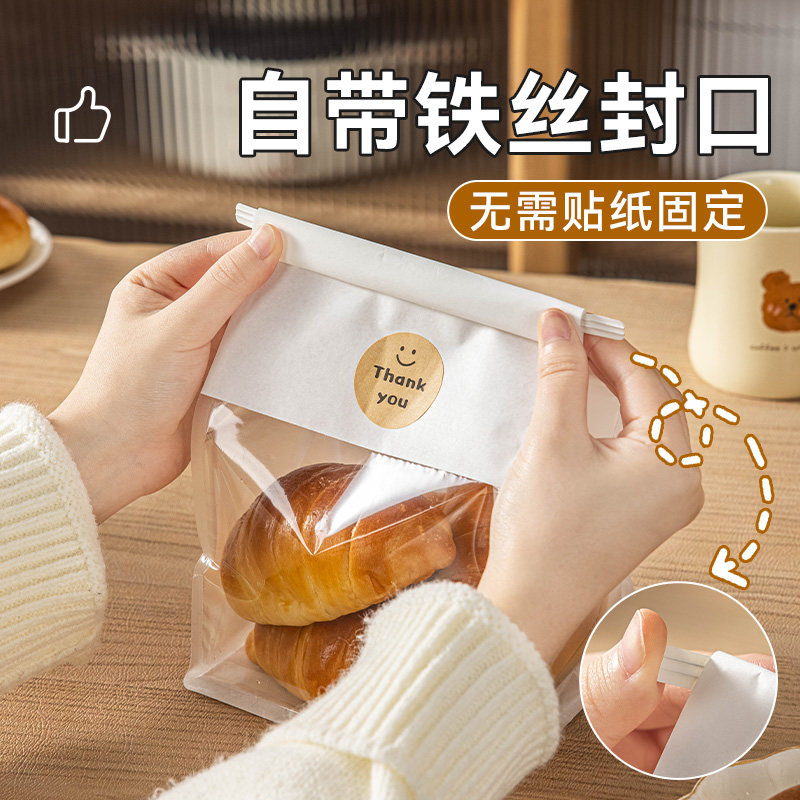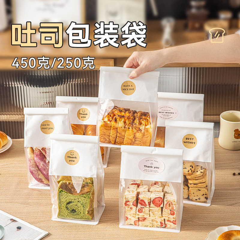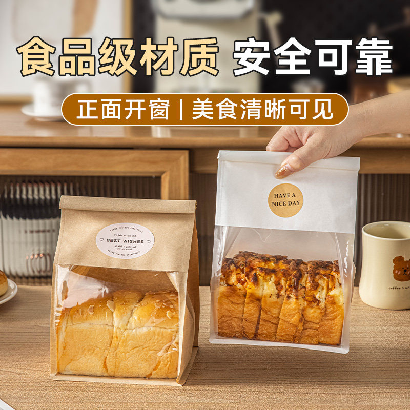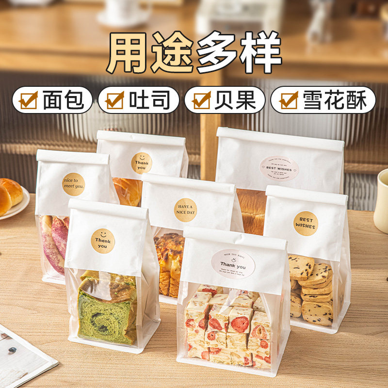 吐司包装袋透明自带封口食品级雪花酥饼干打包袋牛皮袋子加厚防油