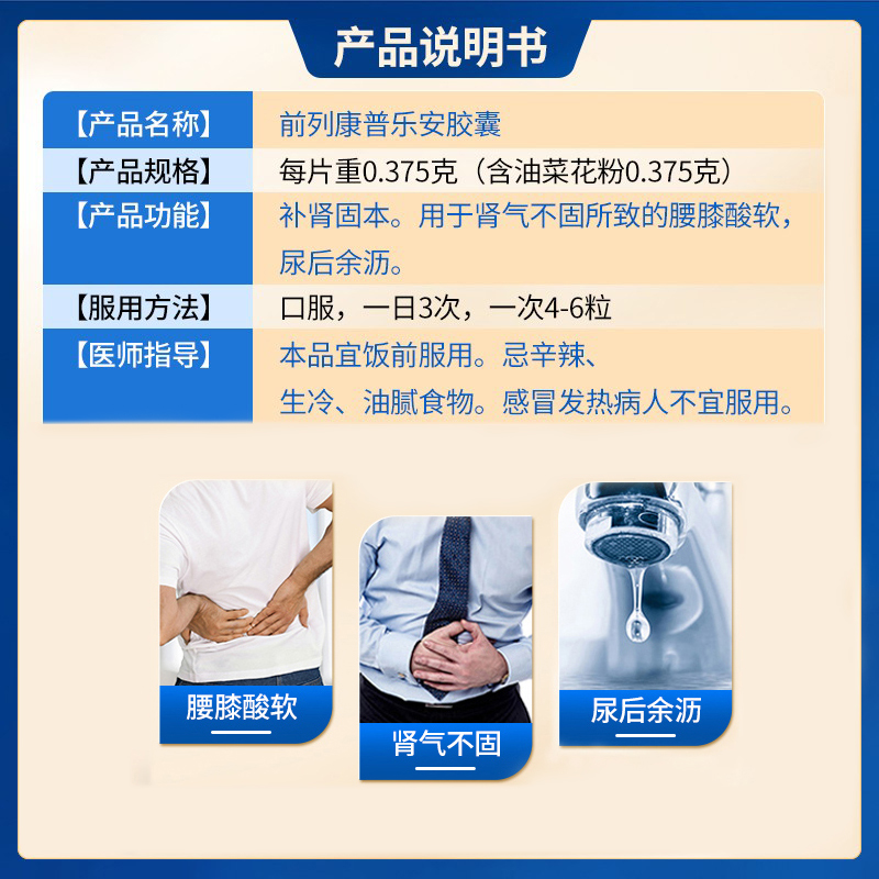 【前列康】普乐安胶囊0.375g*120粒*1瓶/盒补肾腰膝酸软尿后余沥