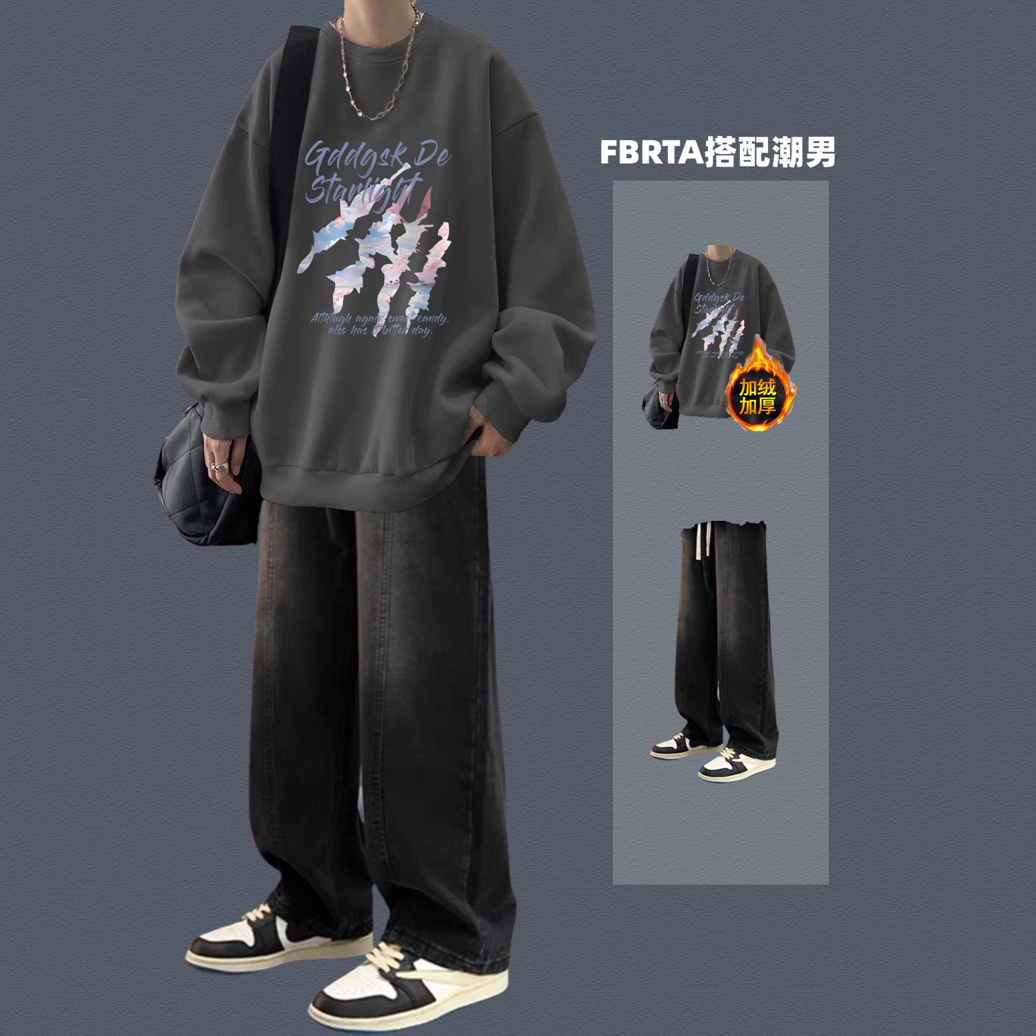 潮流学生春秋卫衣男装套装日常帅气冬季加绒上衣初高中生显高一套