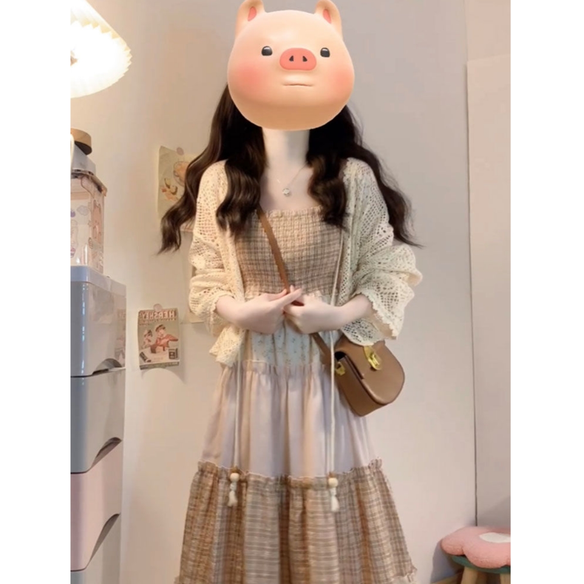 一整套云南旅游小众拼接吊带连衣裙小个子夏日新款镂空防晒套装女