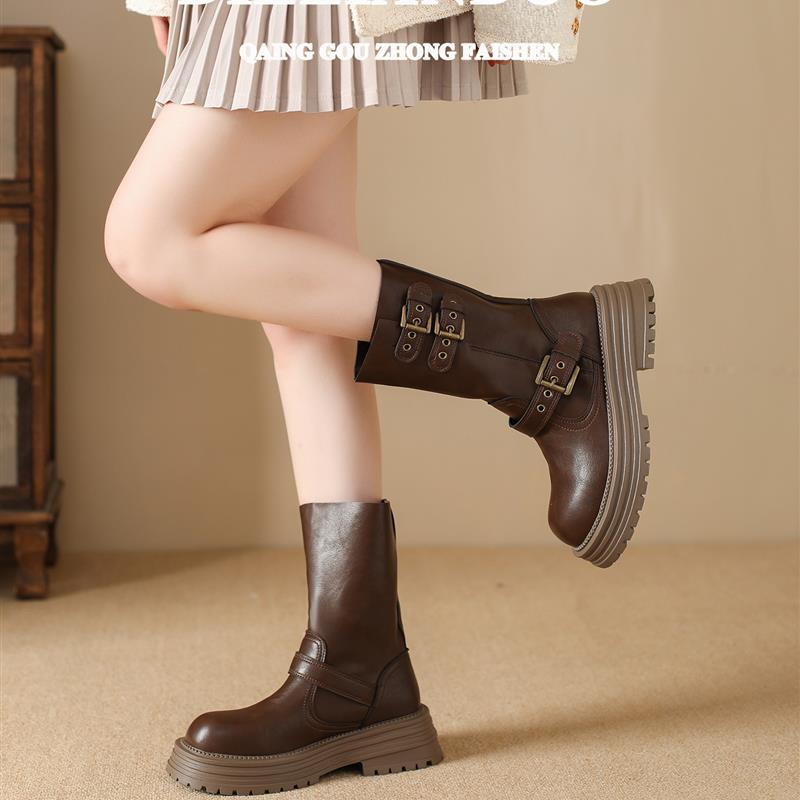 美拉德棕色马丁靴女款2025新款秋冬季爆款超火英伦风小短靴子女靴