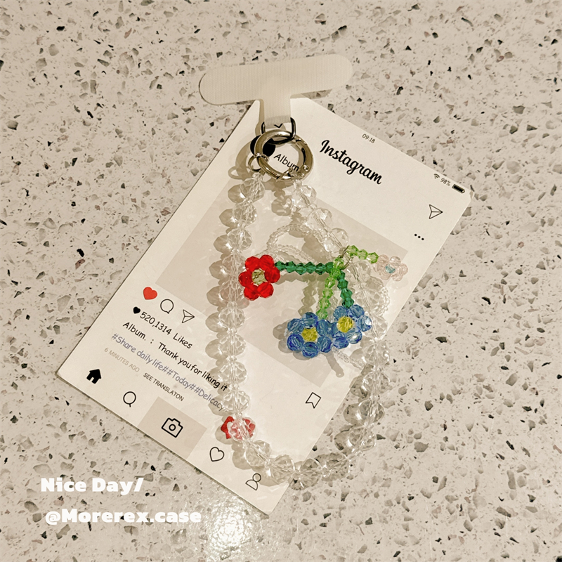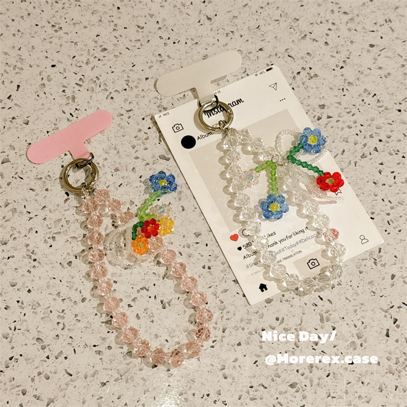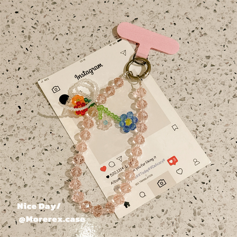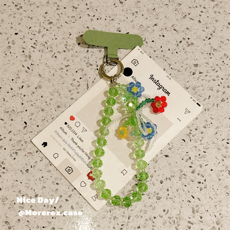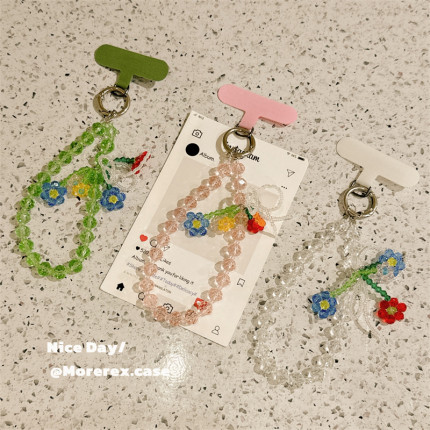 超仙粉绿色手机链春日清新淡雅挂链清爽温柔花朵串珠手腕挂饰轻奢水晶手链磨砂晕染高级小众包包挂件车钥匙壳