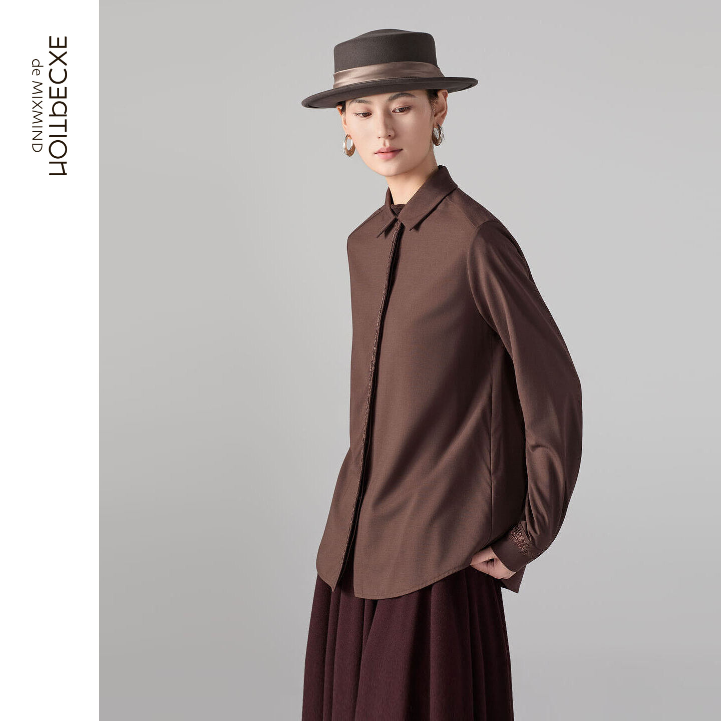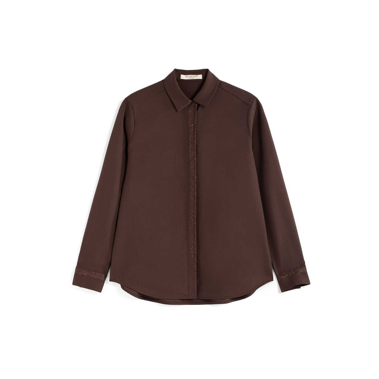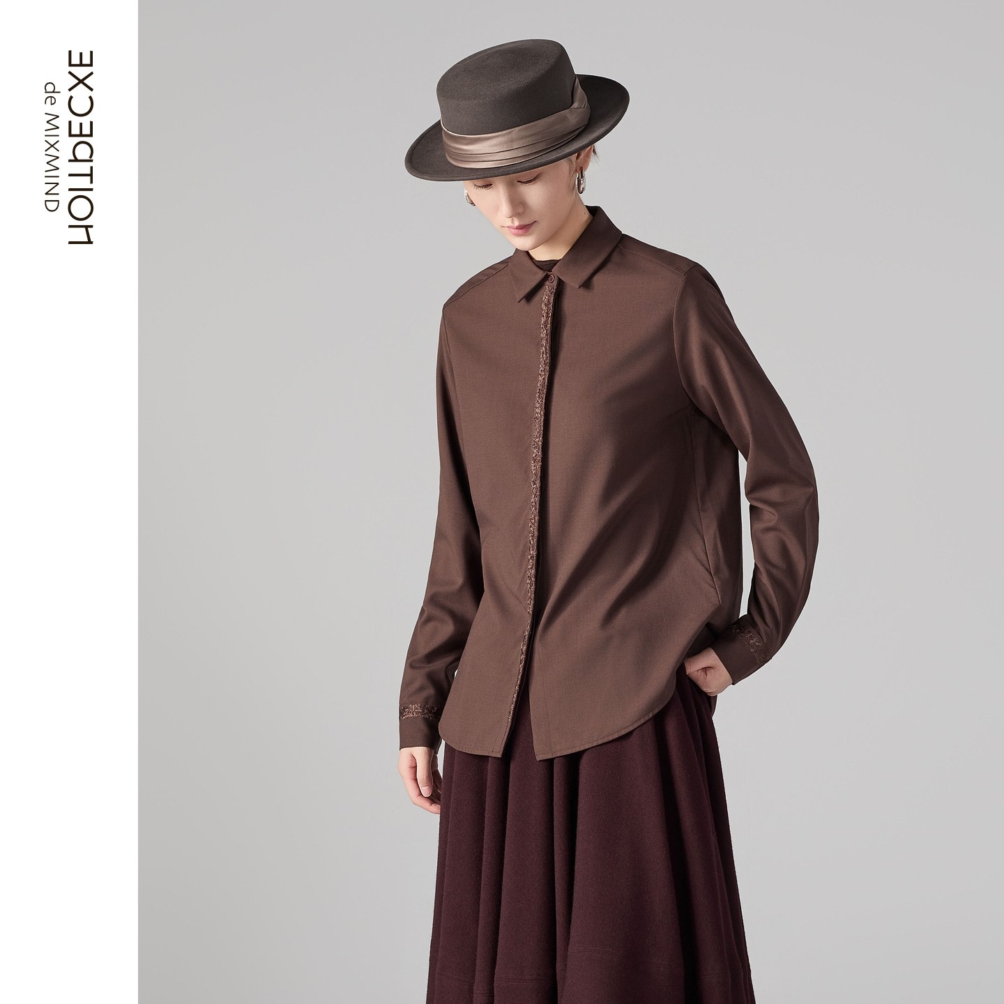 EXCEPTION例外女装2025冬季新品绵羊毛混纺乱针绣花宽松上衣衬衫