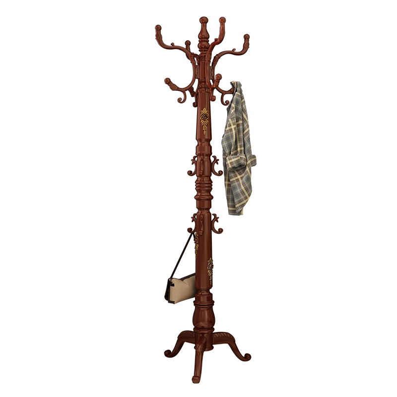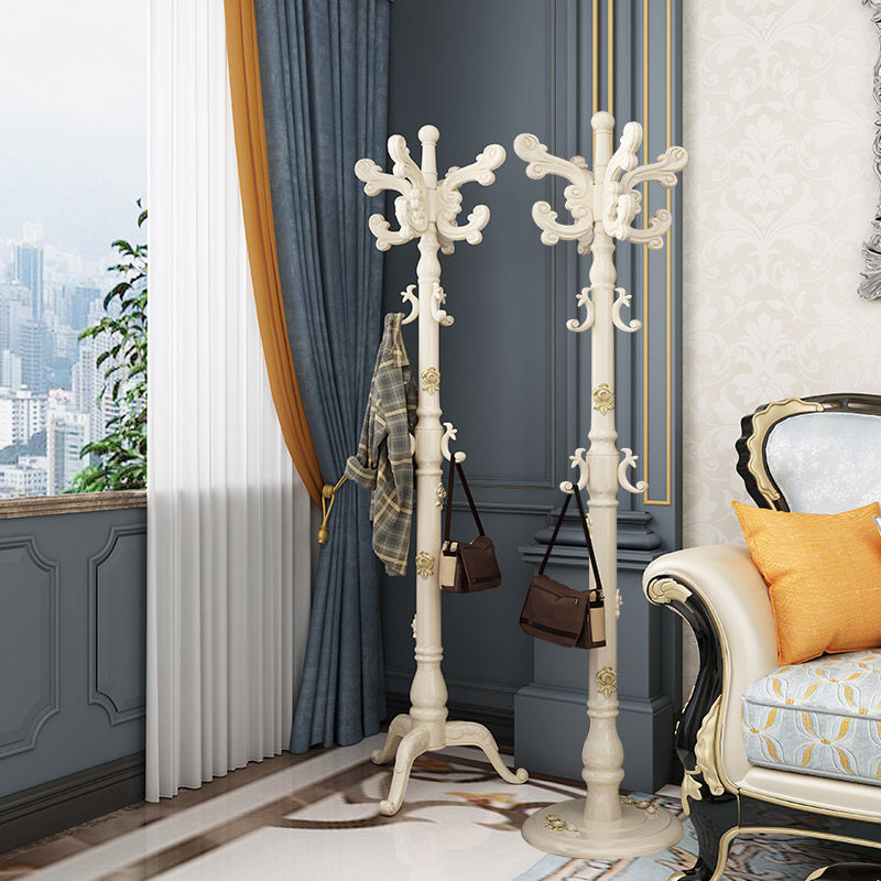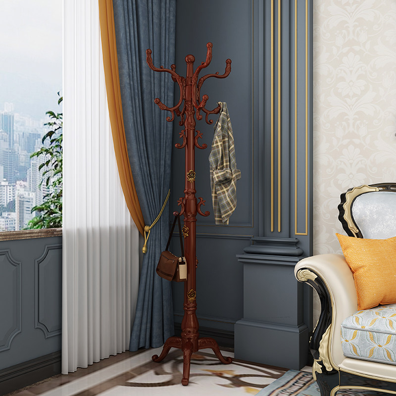 欧式实木落地家用衣帽架卧室衣服架子单杆式挂衣架落地式挂衣杆