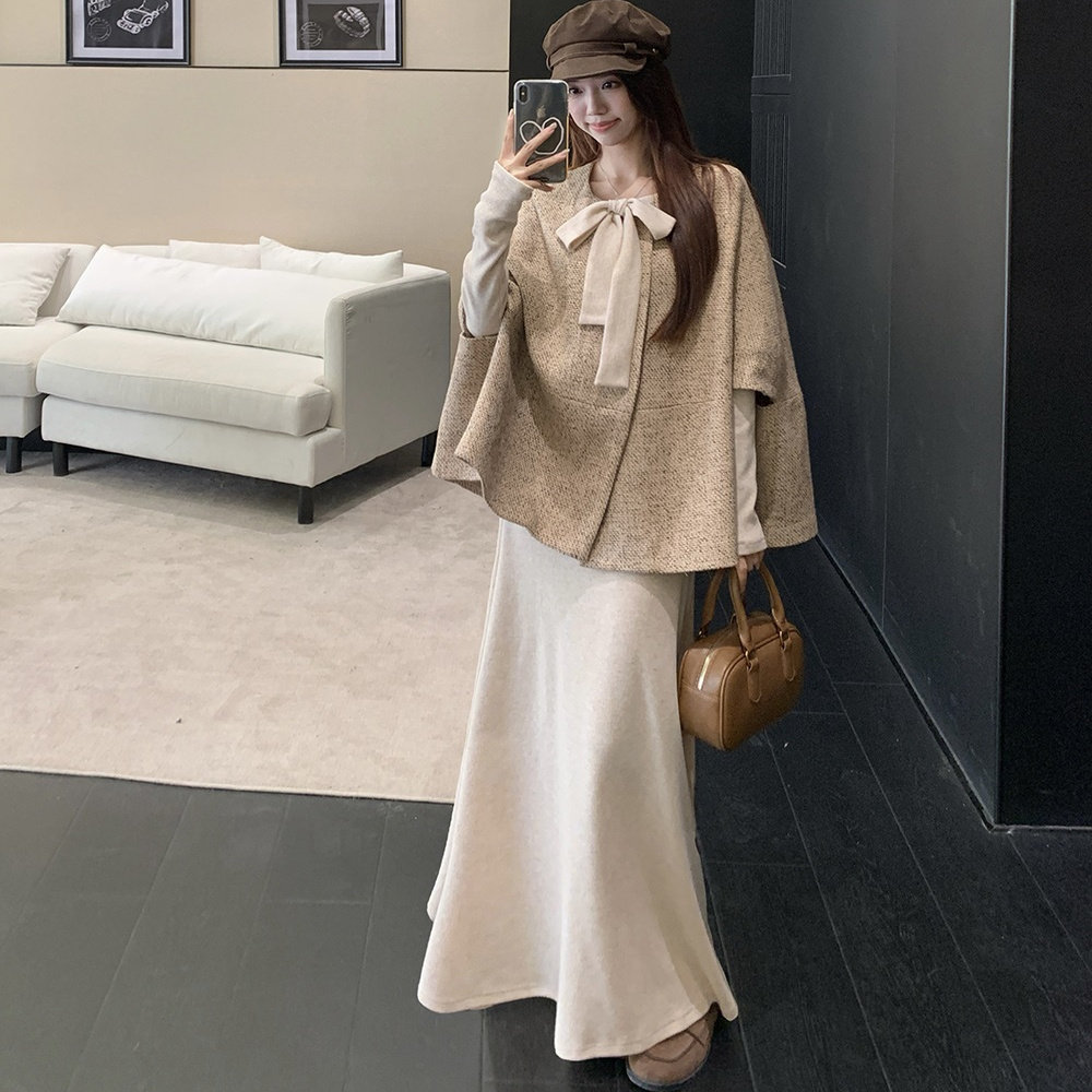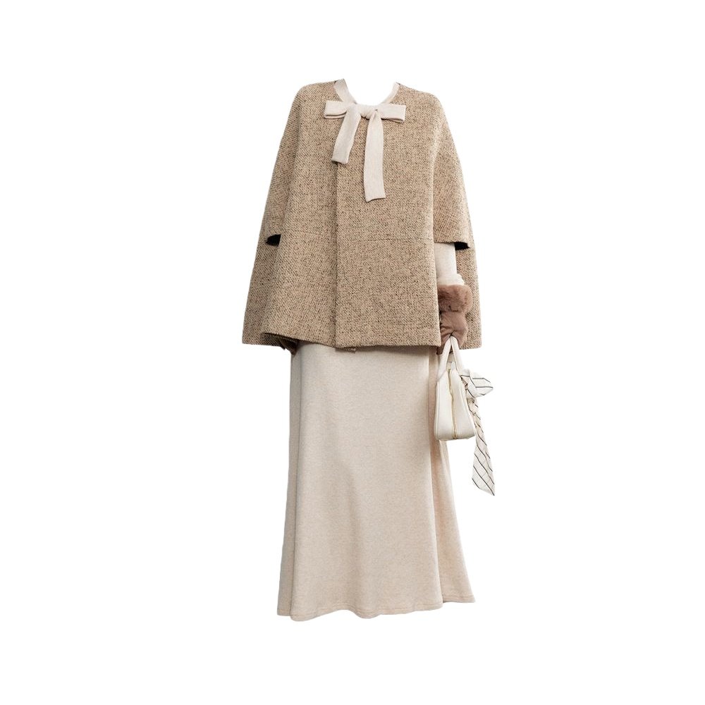 韩系千金小香风斗篷蝴蝶结连衣裙