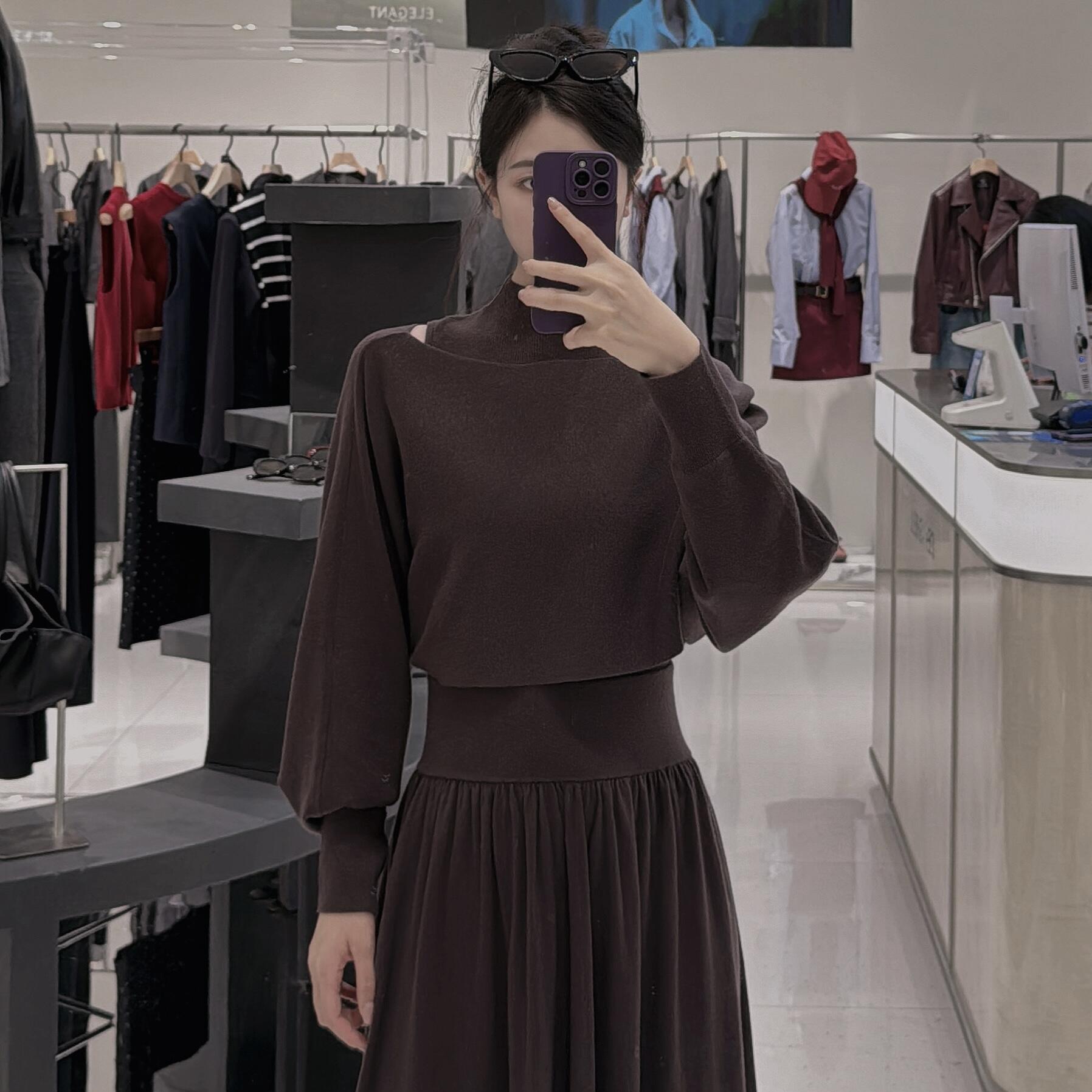 ariosee艾诺丝槿商场同款2025冬季蝙蝠袖两件套针织衫毛衣W167158