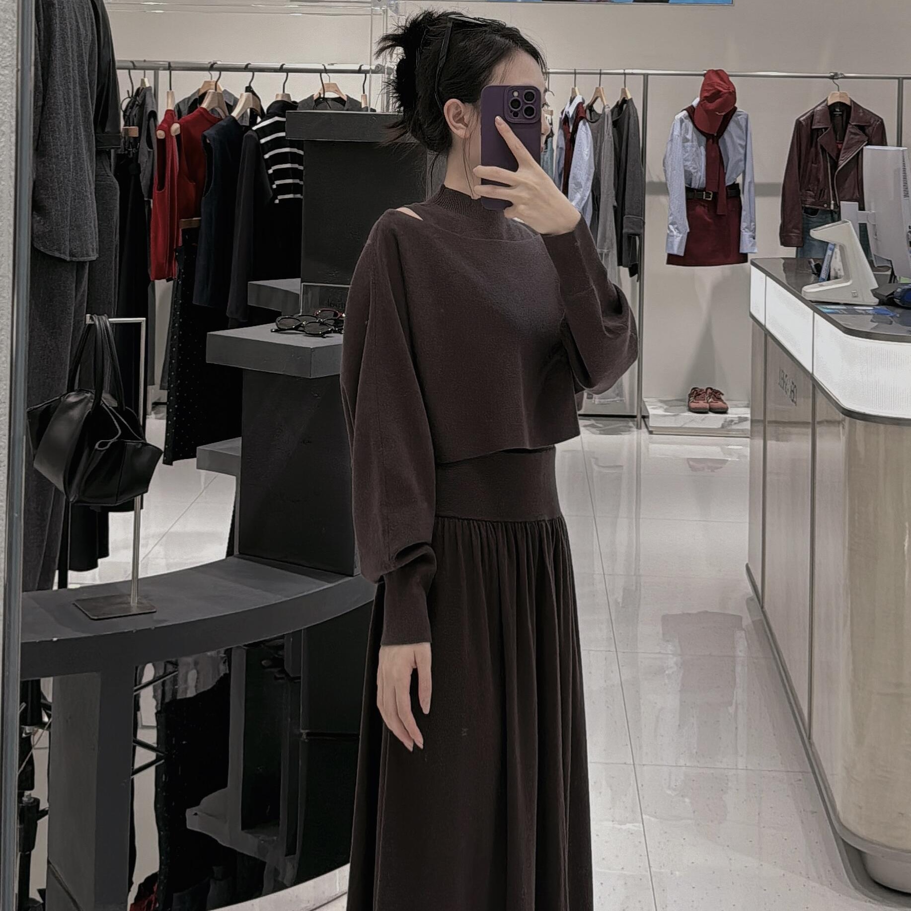 显瘦蝙蝠袖两件套针织衫毛衣女