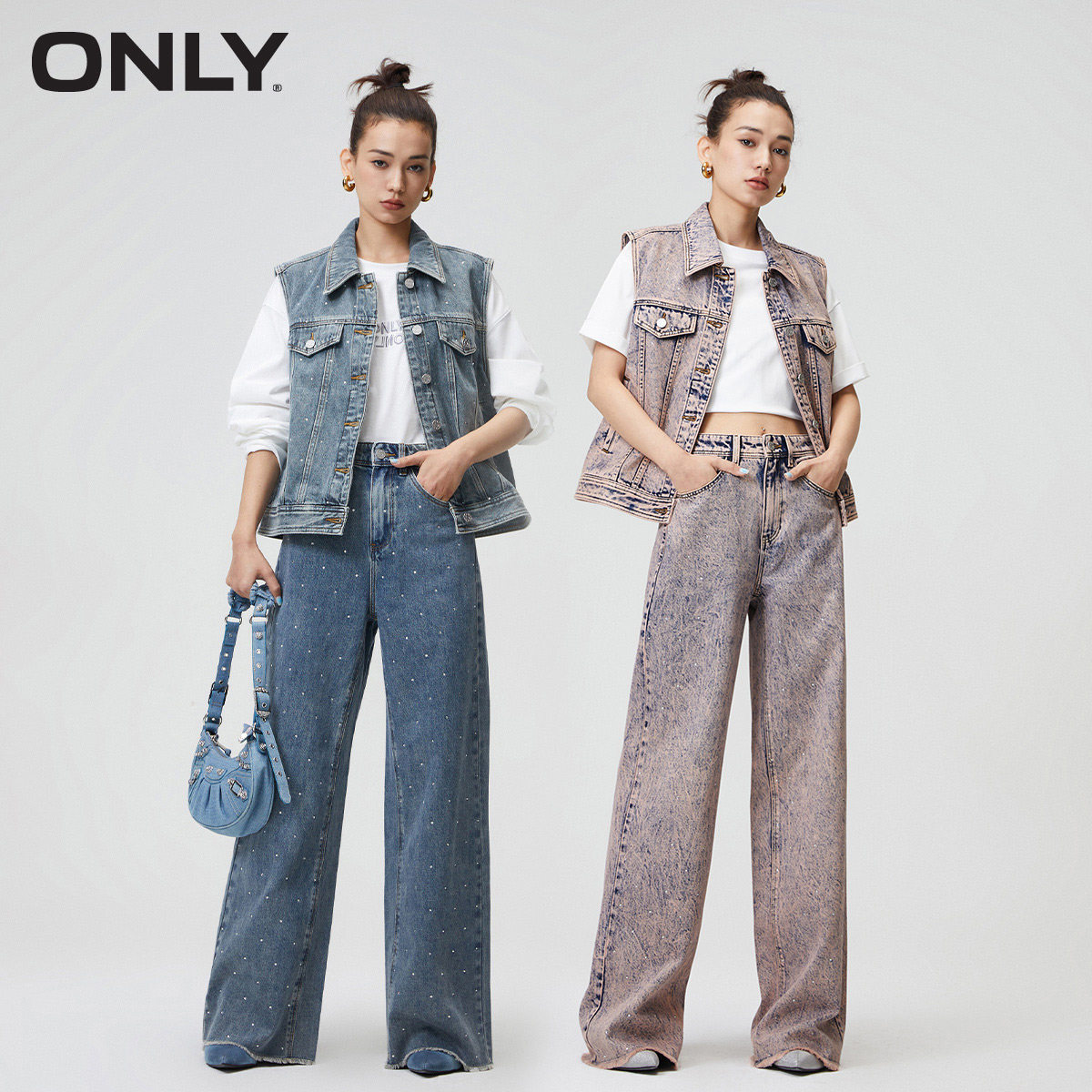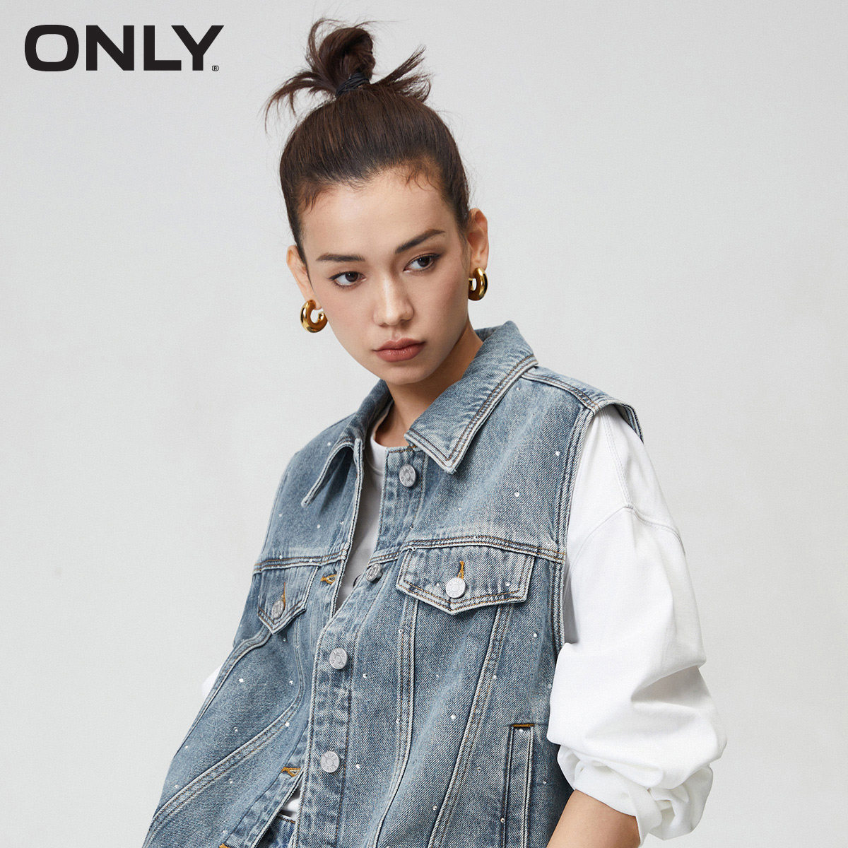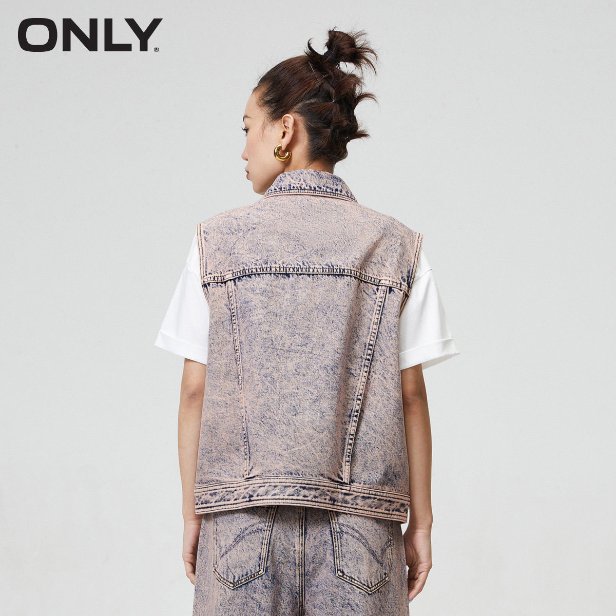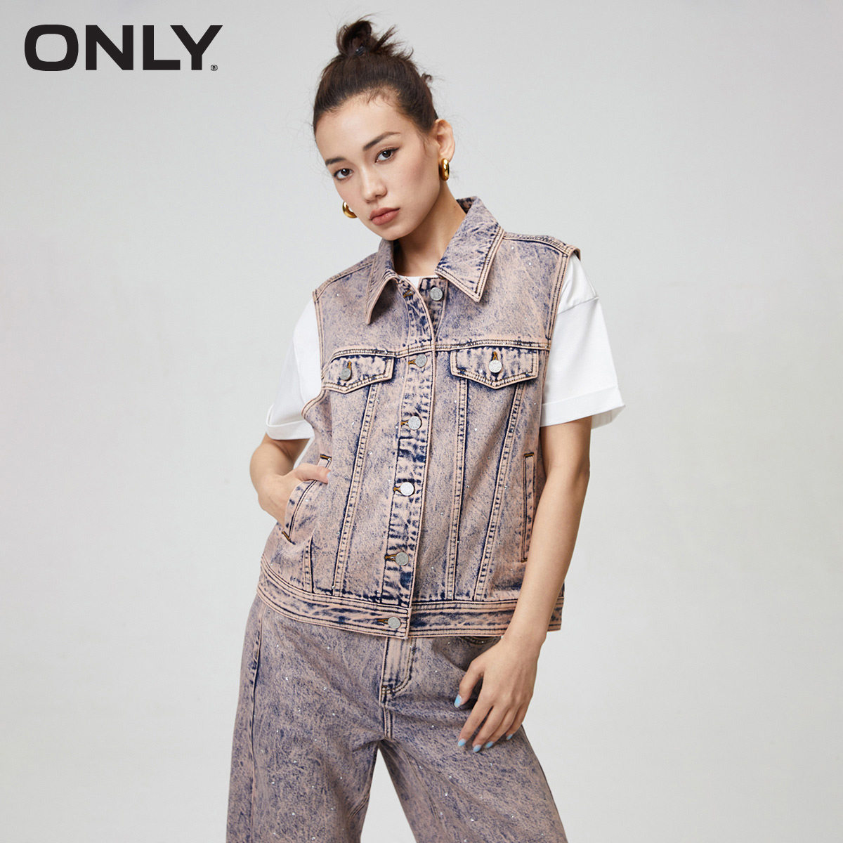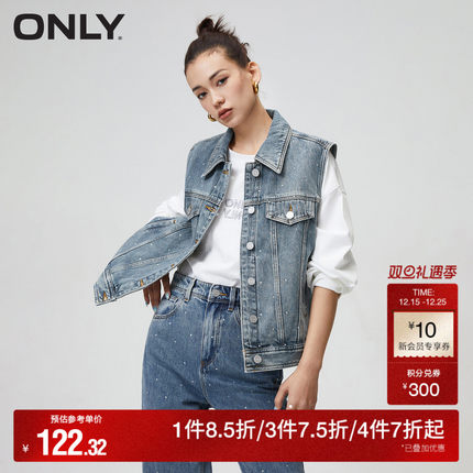ONLY奥莱夏季时尚重工宽松翻领无袖水洗牛仔外套女
