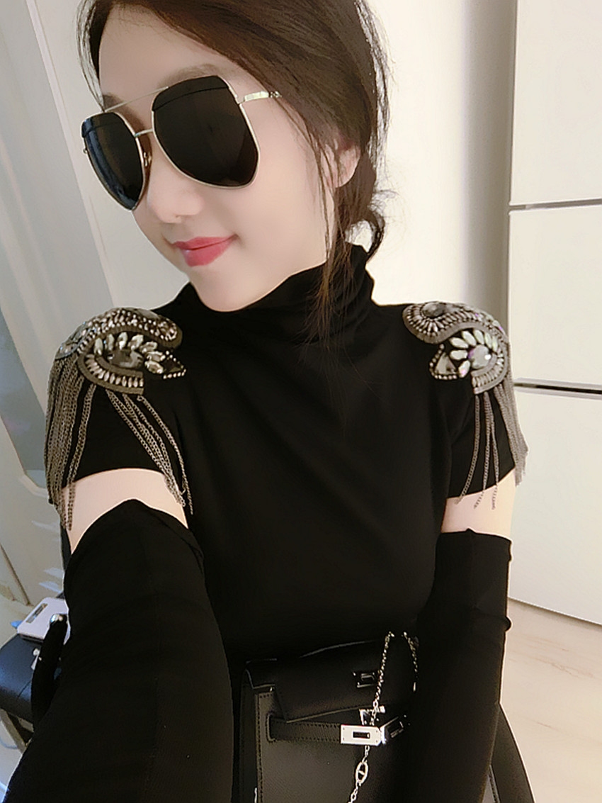 欧洲站秋冬新品肩章高领小衫打底衫修身显瘦韩版短袖弹力T恤女潮
