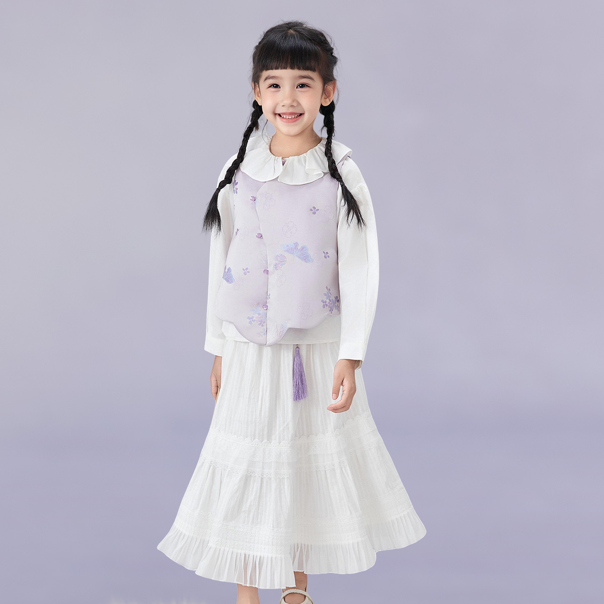 观山见童装女童半身裙2025秋季新款儿童女宝蛋糕蓬蓬裙衬衫马甲套