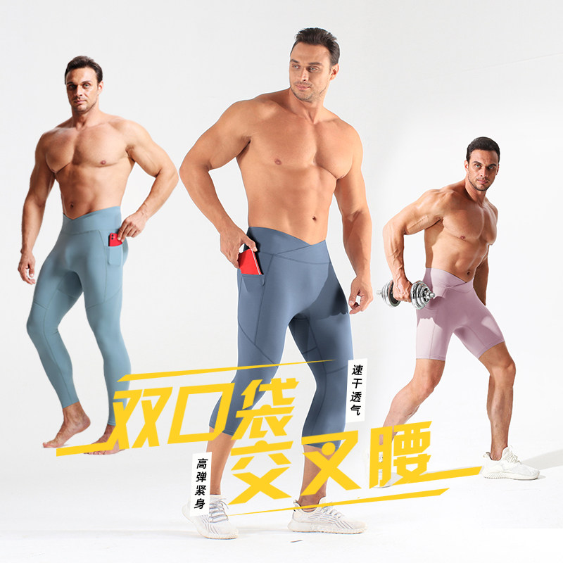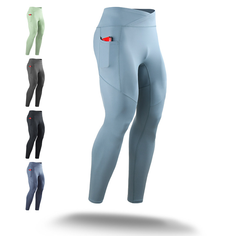 男交叉高腰瑜伽运动打底裤压缩弹力速干跑步篮球训练紧身健身长裤