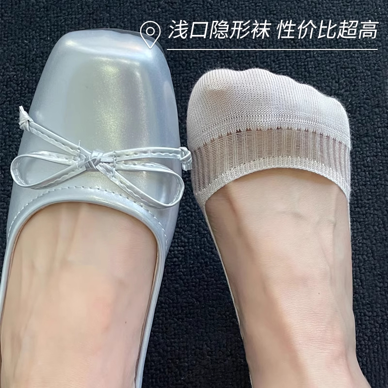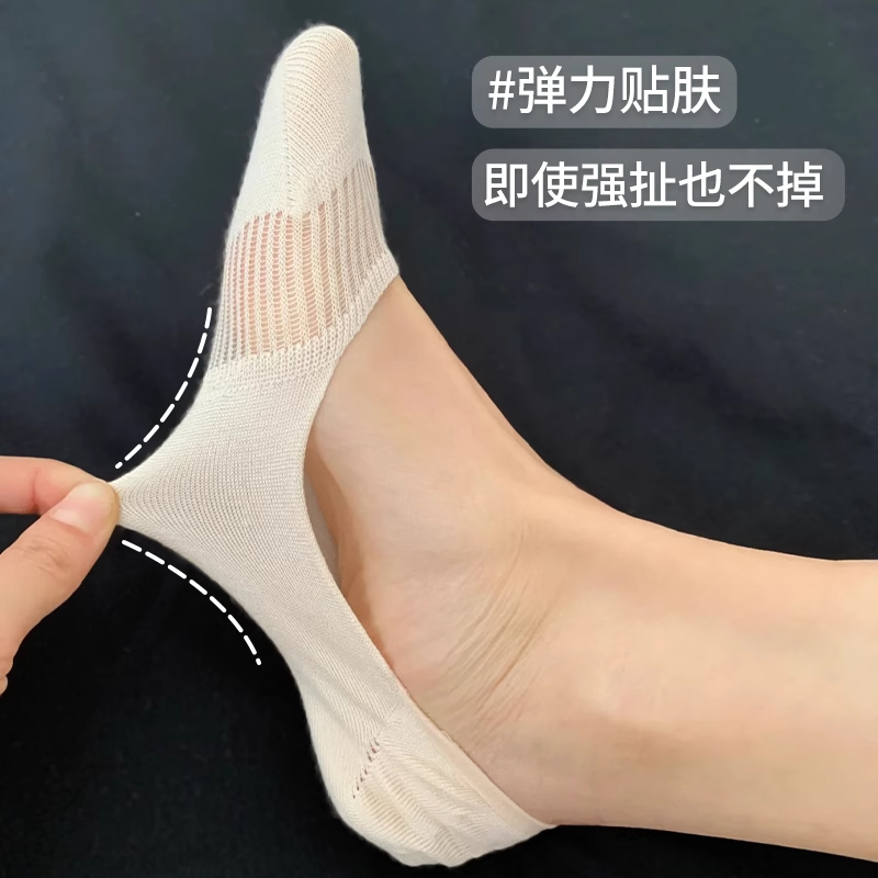 船袜女夏薄款浅口隐形防滑不掉跟纯棉防臭吸汗透气网眼短袜搭单鞋