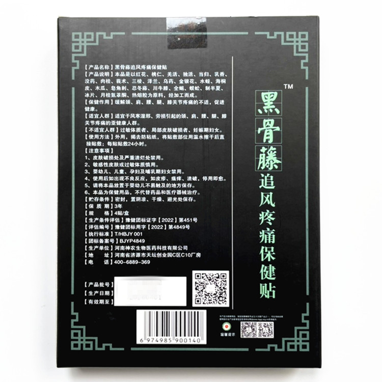 黑骨藤追风疼痛保健贴黑骨藤痛可贴颈椎腰椎膝盖关节追风活骨贴膏