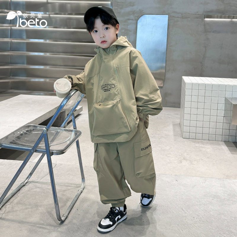 依贝童儿童装男童秋装套装春秋款男孩卫衣运动大童酷帅气秋季潮
