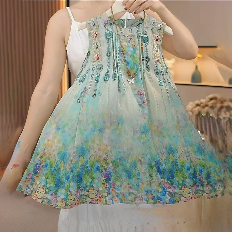 【送帽子】女童夏季无袖连衣裙民族风扎染沙滩裙公主裙HCB775
