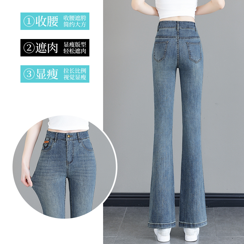 高腰微喇牛仔裤女年秋季新款弹力显瘦小个子气质马蹄喇叭长裤