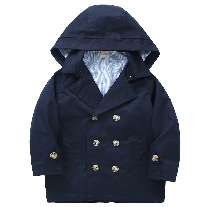 2025春季新款男童外套儿童韩版风衣中长款帽子小中大童秋装大衣潮