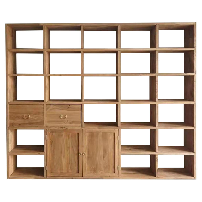 老榆木书架定制满墙全实木落地吊柜置物收纳架靠墙格子架拐角榫卯