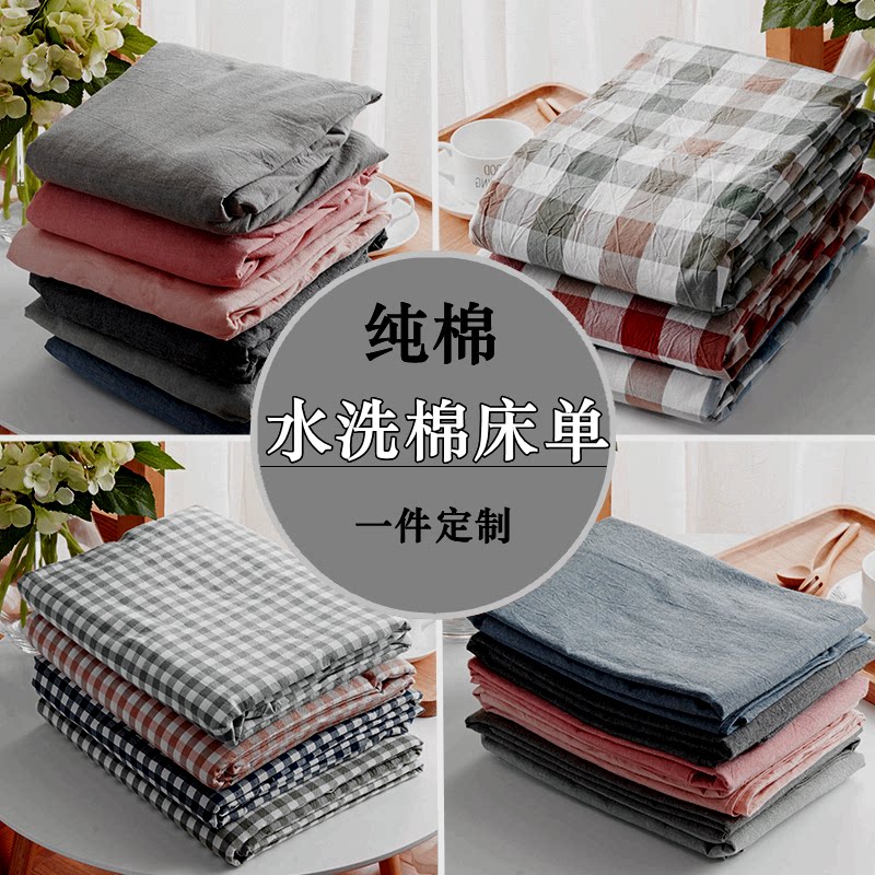 水洗棉床单单件纯棉柔软床笠纯色格子条纹床罩1.21.5m1.8米床定做