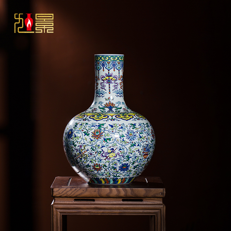 景德镇陶瓷花瓶手绘斗彩天球瓶瓷瓶客厅玄关仿古装饰中式瓷器摆件