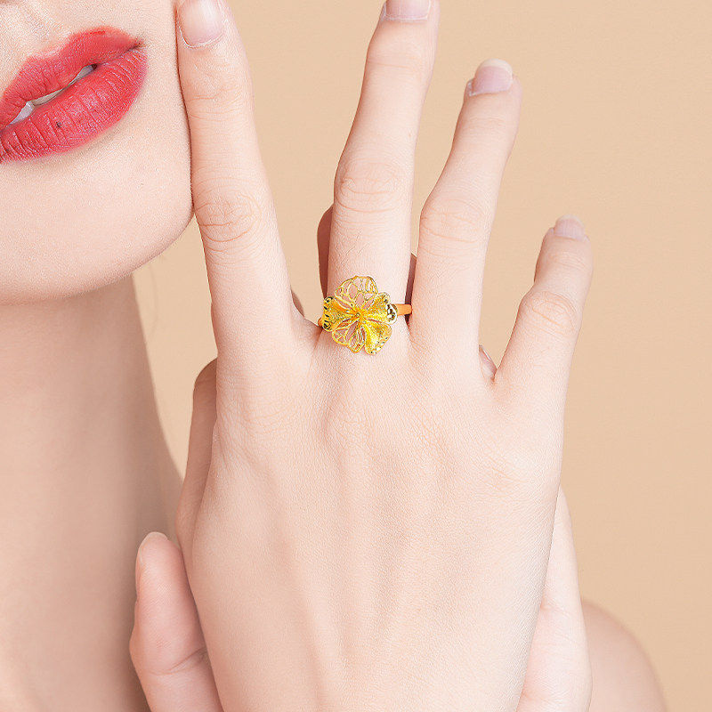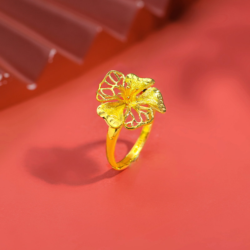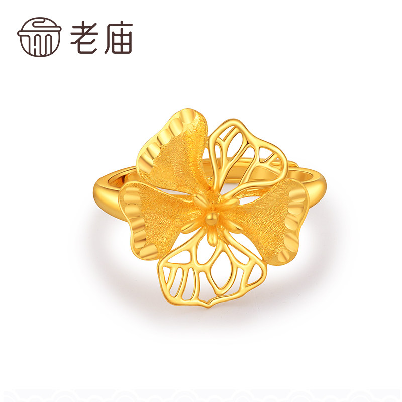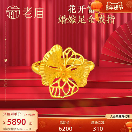 老庙黄金戒指婚嫁类牡丹花开富贵足金手饰送礼礼物官方正品婚嫁礼