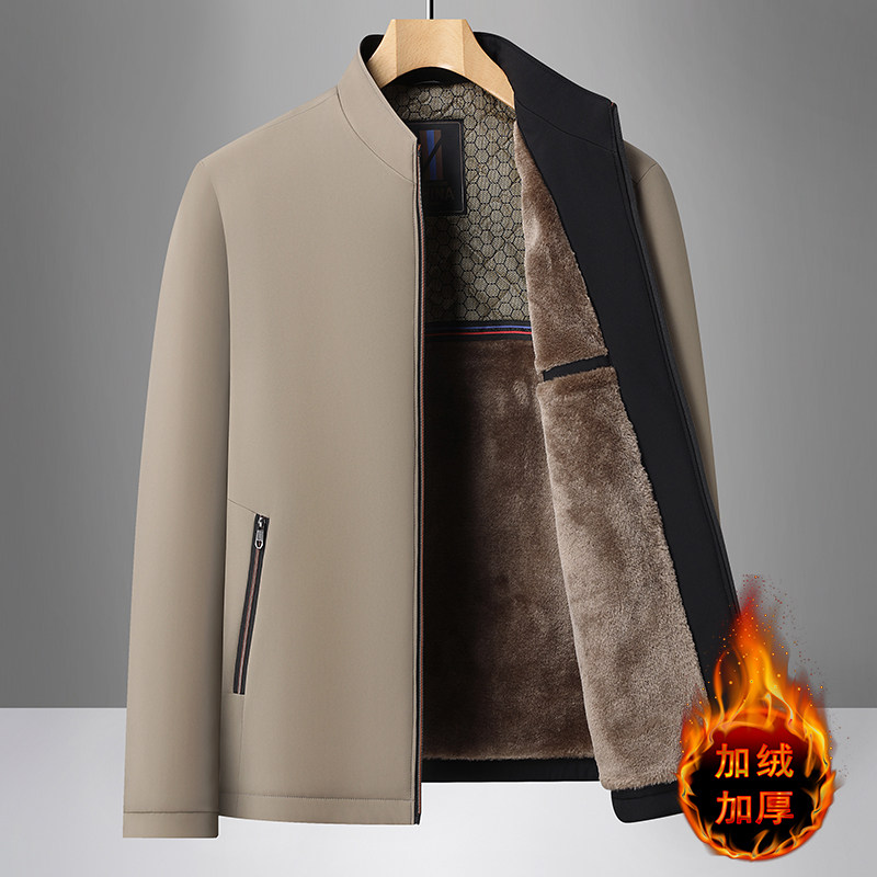 中老年休闲夹克加绒加厚立领外套