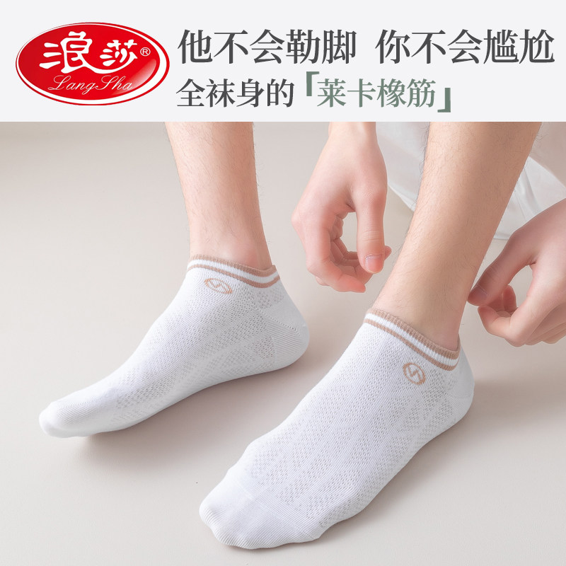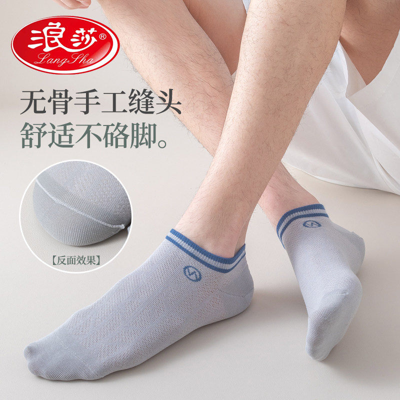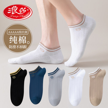 浪莎袜子男士短袜纯棉防臭吸汗男式船袜春夏季薄款运动全棉男袜子