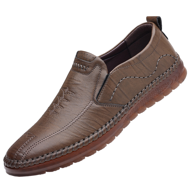男鞋真皮软底皮鞋男士牛筋底百搭休闲鞋子潮驾车懒人一脚蹬豆豆鞋
