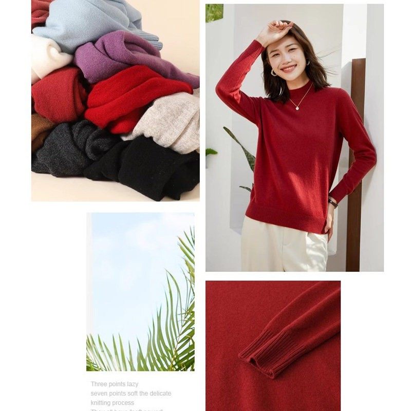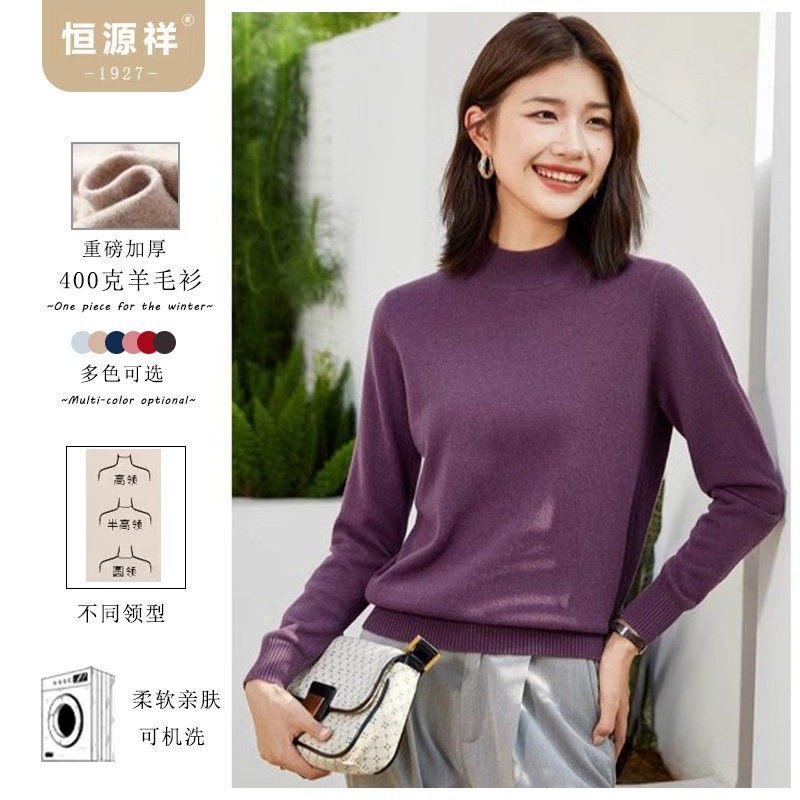 恒源祥秋冬季重磅加厚款女士羊毛衫宽松百搭毛衣女羊毛针织打底衫