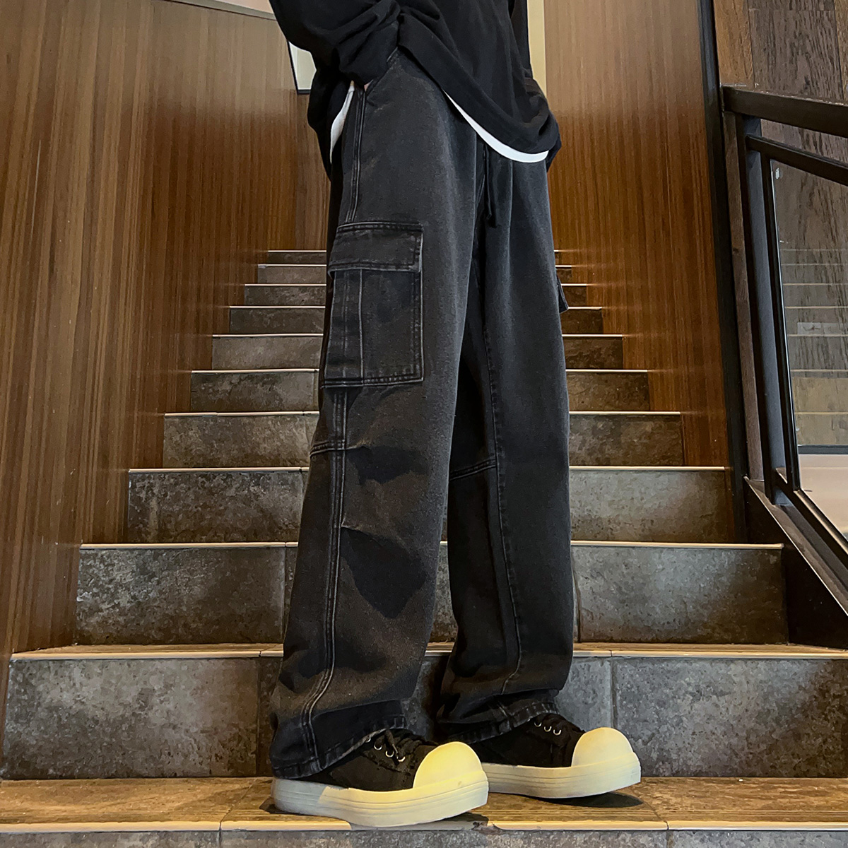 唐狮25秋冬季新款男牛仔裤工装直筒裤宽松简约阔腿长裤子潮百搭W