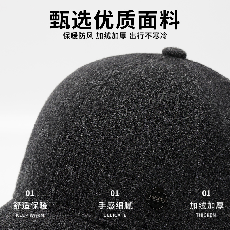 中老年帽子男士秋冬休闲防风加厚保暖护耳帽老人鸭舌帽户外棒球帽