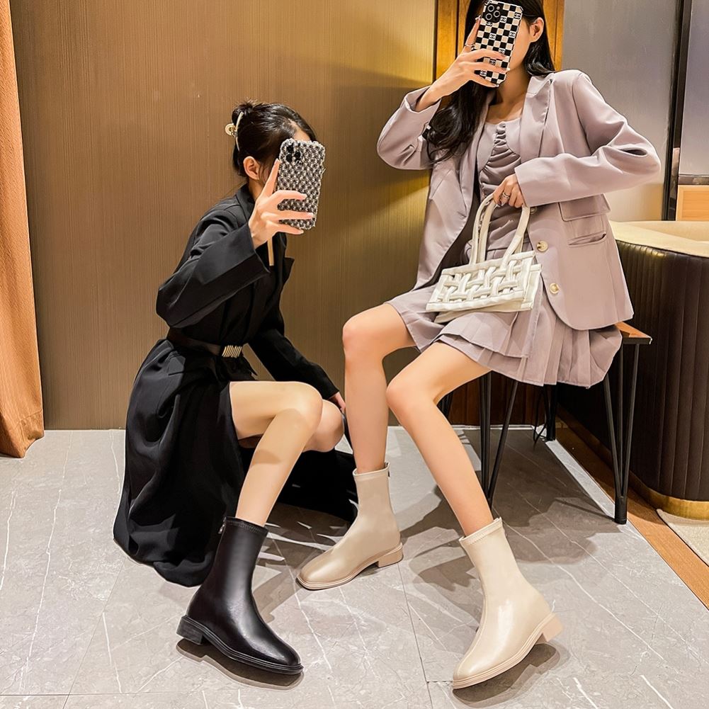 小个子瘦瘦靴短靴女白色内增高小码女靴313233秋冬新款马丁靴加绒