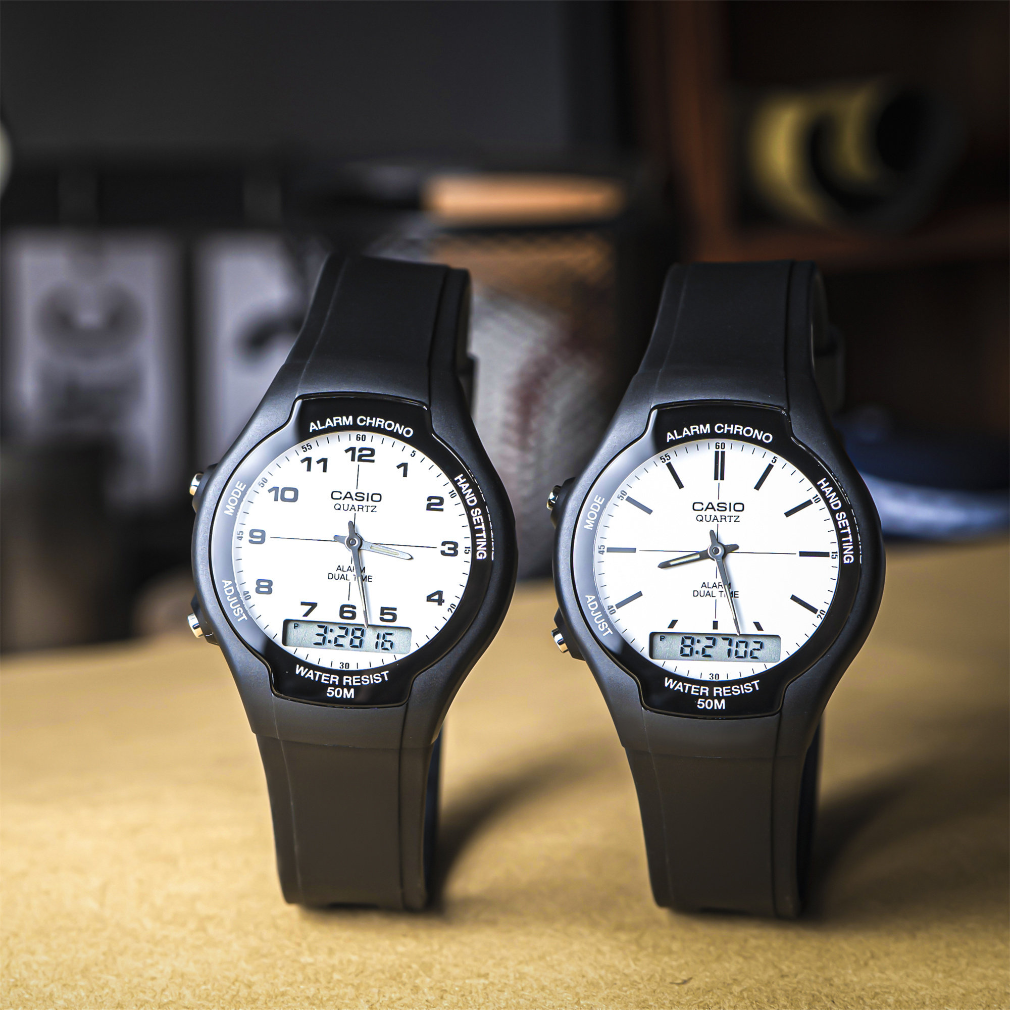 卡西欧手表CASIO数字指针双显学生表防水运男表AW-90H-9E/7E/7B2B