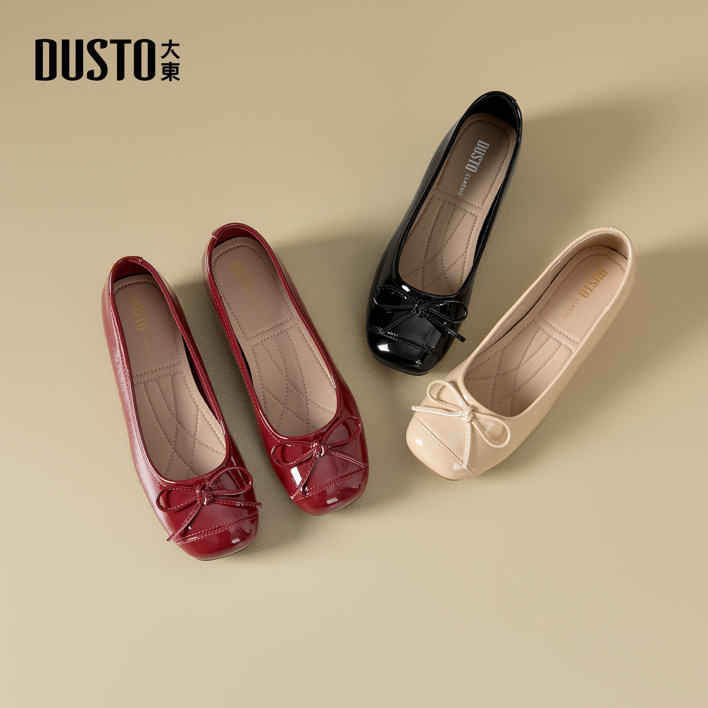 大东浅口鞋女鞋2026春季新款甜美内增高中跟套脚方头蝴蝶结C1036