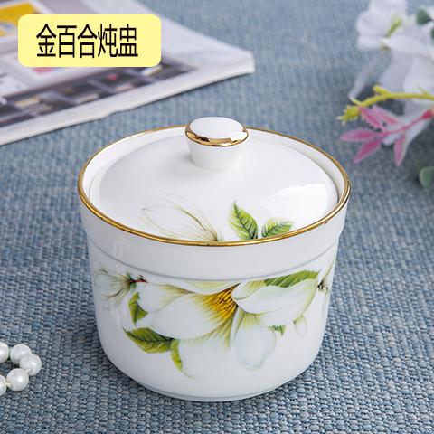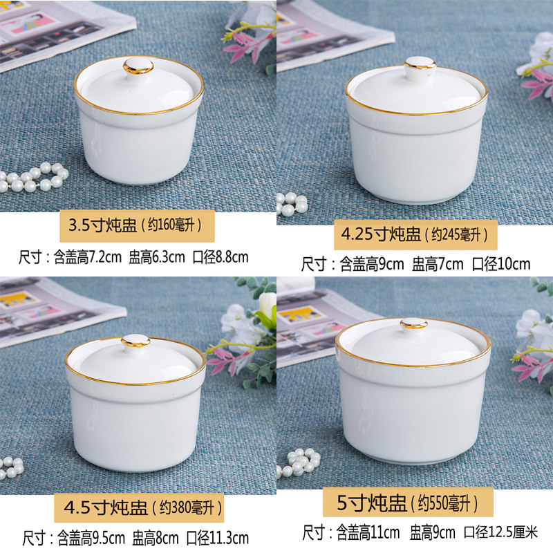 陶瓷炖盅带盖隔水炖盅内胆金边汤碗蒸碗燕窝炖盅蒸蛋盅碗甜品罐