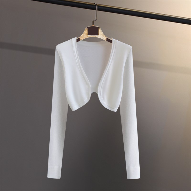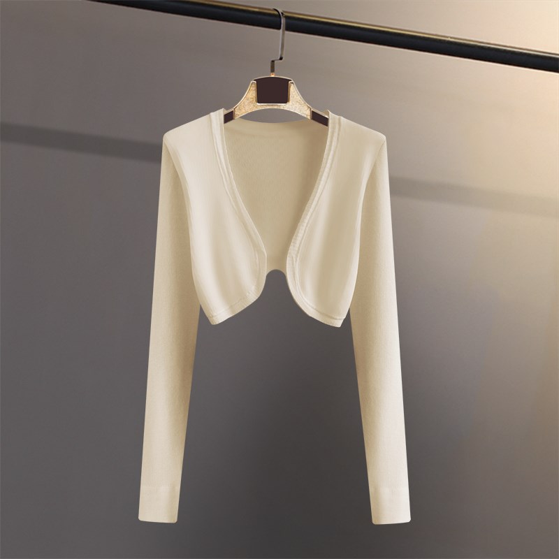 复古法式超薄针织开衫修身纯色长袖外搭配裙披肩短款空调防晒上衣
