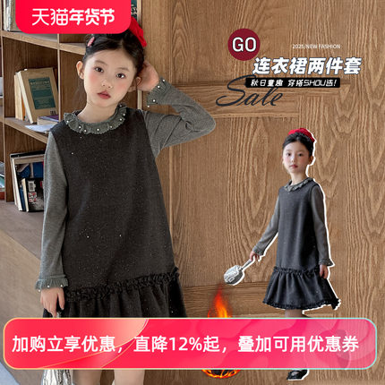 女童连衣裙秋冬2025新款儿童洋气加厚女中大童小香风背心裙两件套