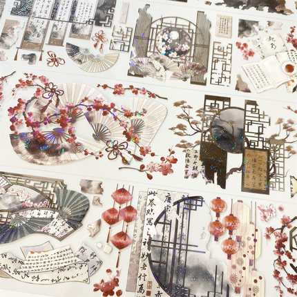手帐分装胶带锦书灰堆新七天屏风画PET古风素材账流麻贴纸DIY咕卡