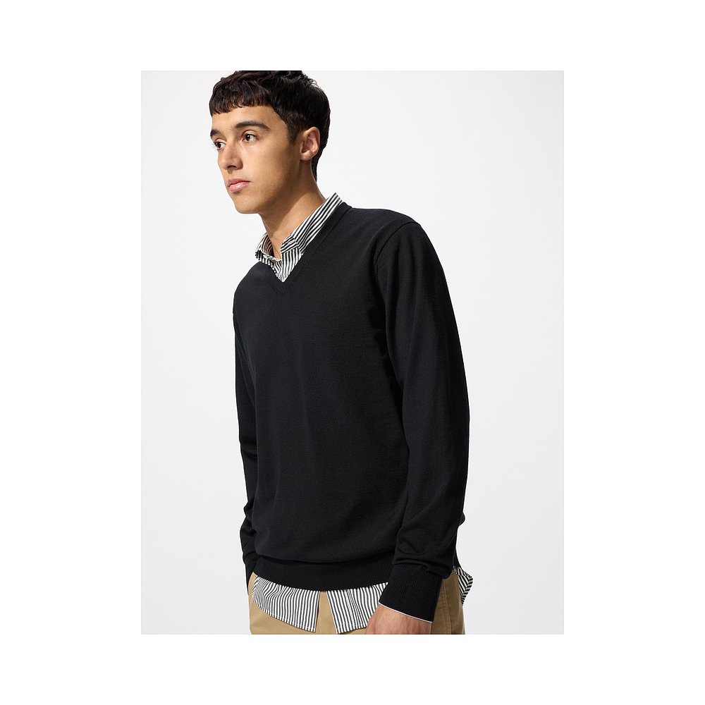 日潮跑腿UNIQLO优衣库 美利奴羊毛V领毛衣 09 BLACK MEN M 478536