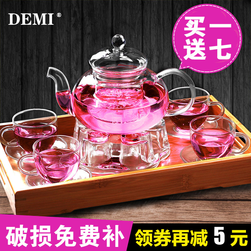 黛米加厚玻璃茶具水果红草花茶壶套装整套耐热高温过滤功夫家用