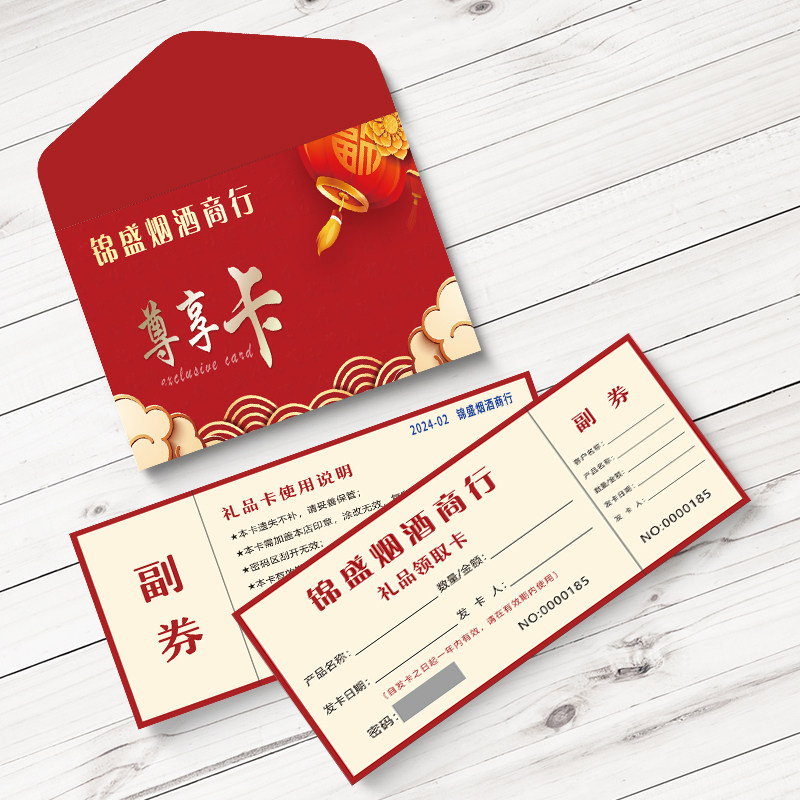礼品券节日送礼团购券茶叶烟酒提货密码信封卡套刮刮卡定制
