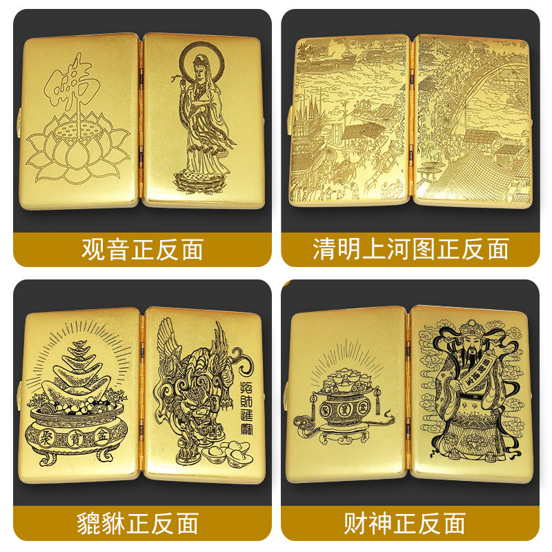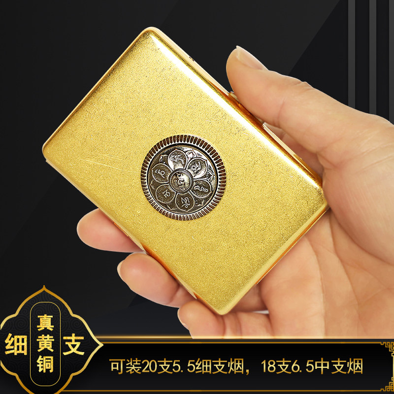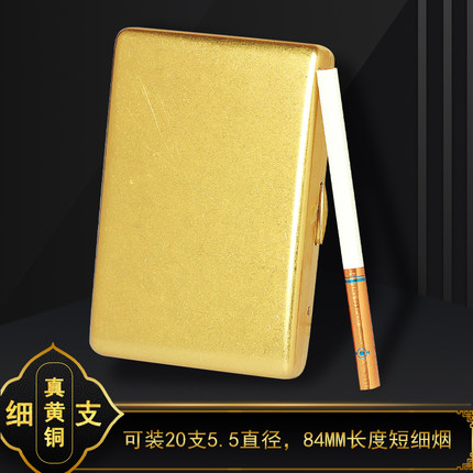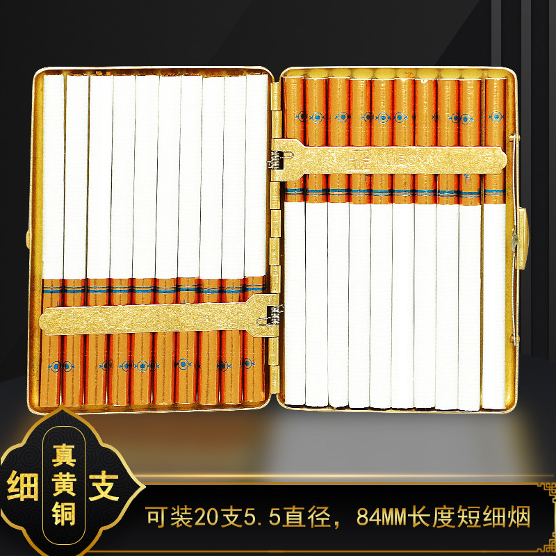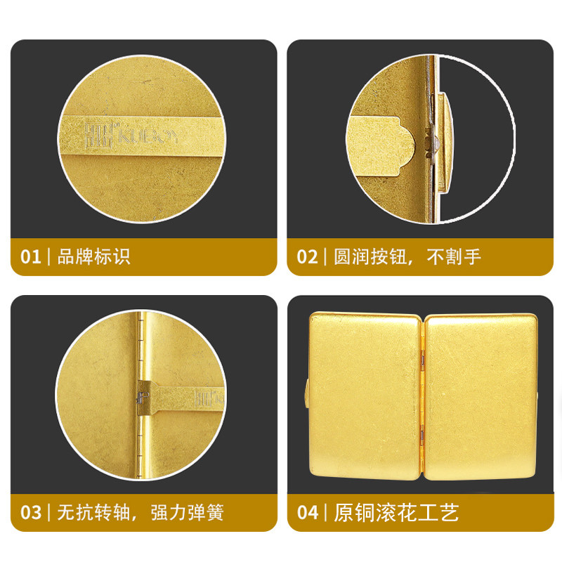 酷宝 黄铜短款细支烟盒20支装便携超薄创意男香烟盒复古宽窄可用