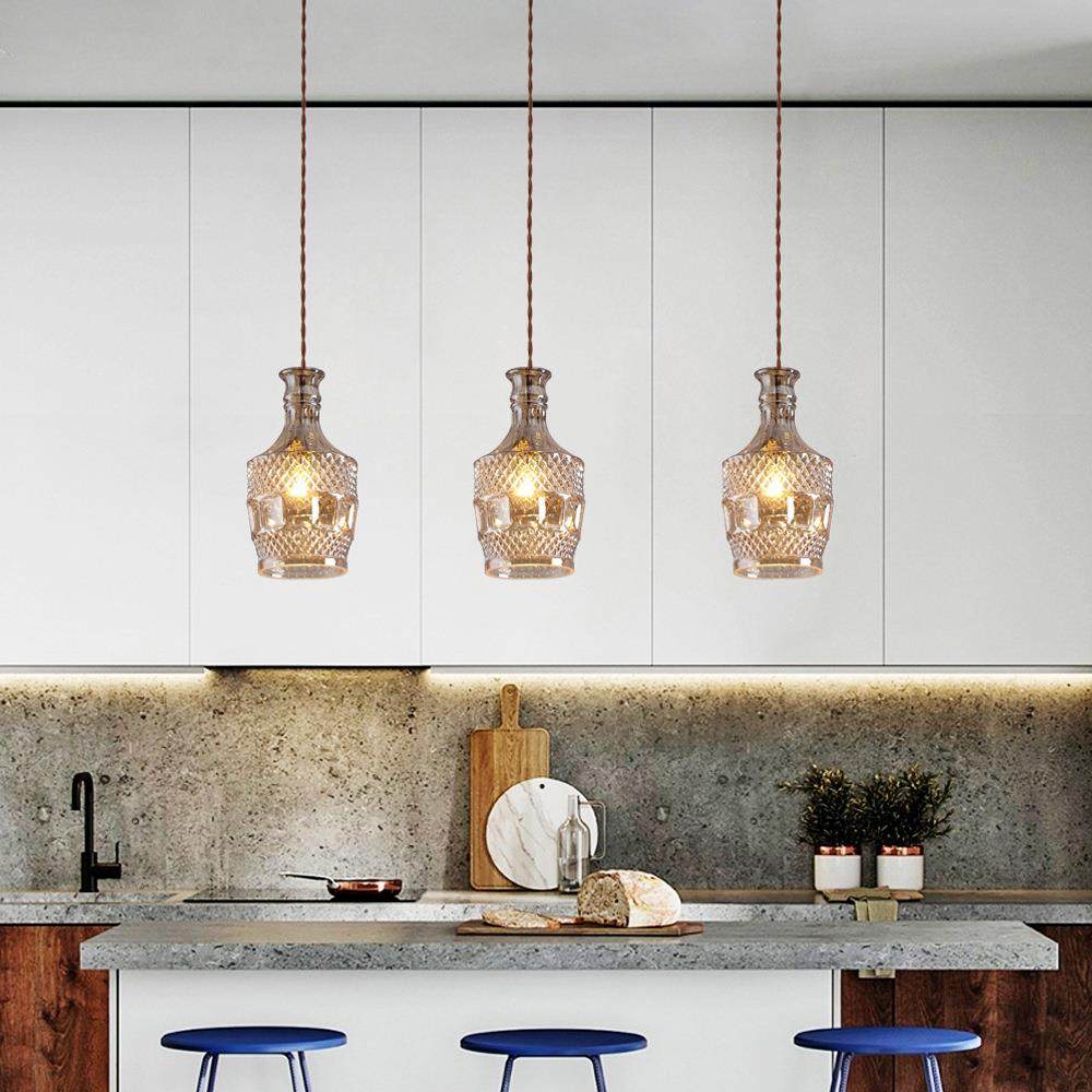 餐厅创意吧台吊灯铁艺玻璃单头吊灯复古工业风麻绳吊灯刻花酒瓶