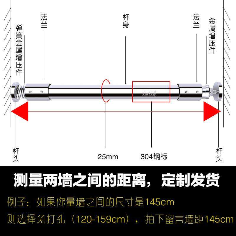 浴室免打孔浴帘套装加厚304不锈钢 浴帘杆套装卧室窗帘杆衣柜撑杆