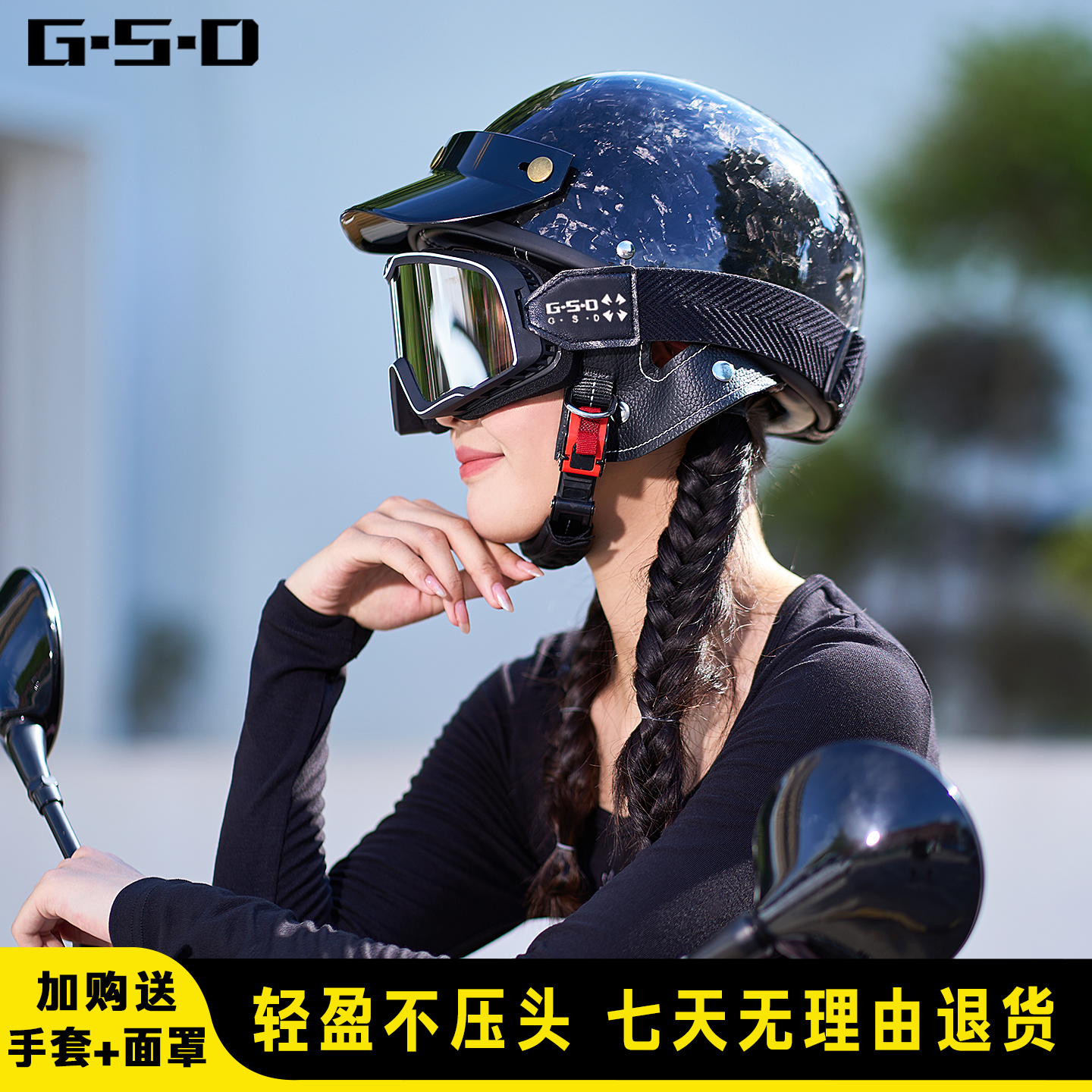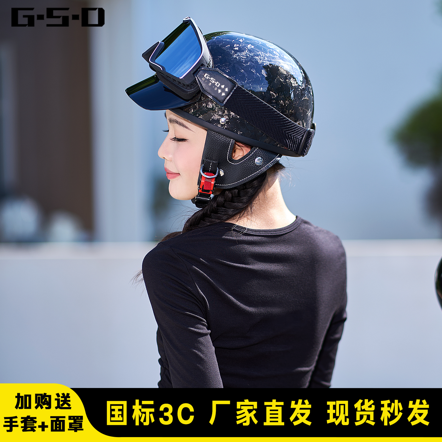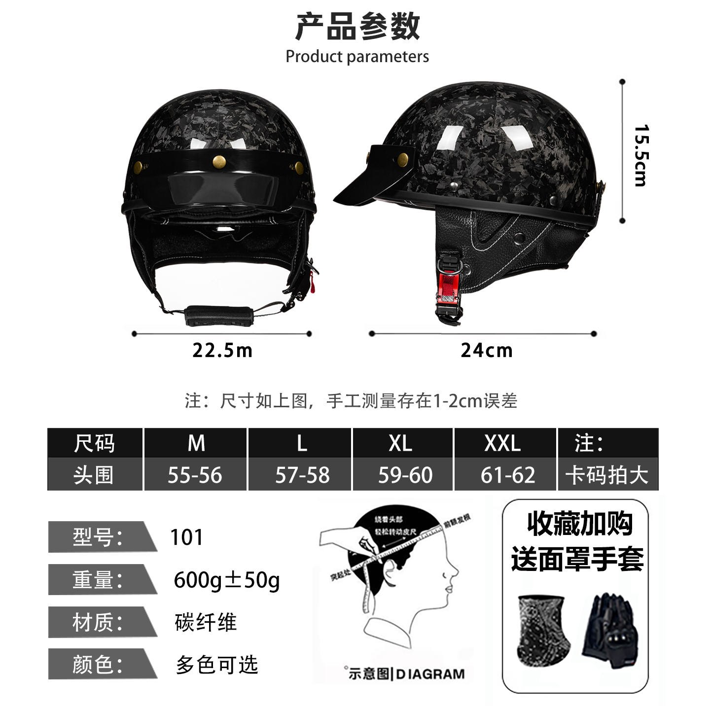 碳纤维摩托车头盔超轻夏天瓢盔3C四季巡航男女复古半盔哈雷盔