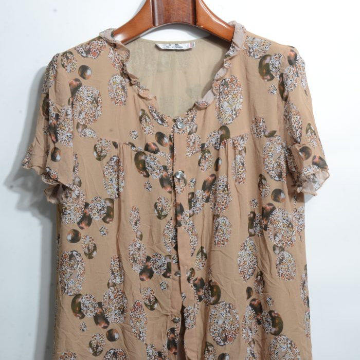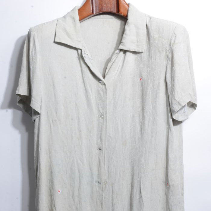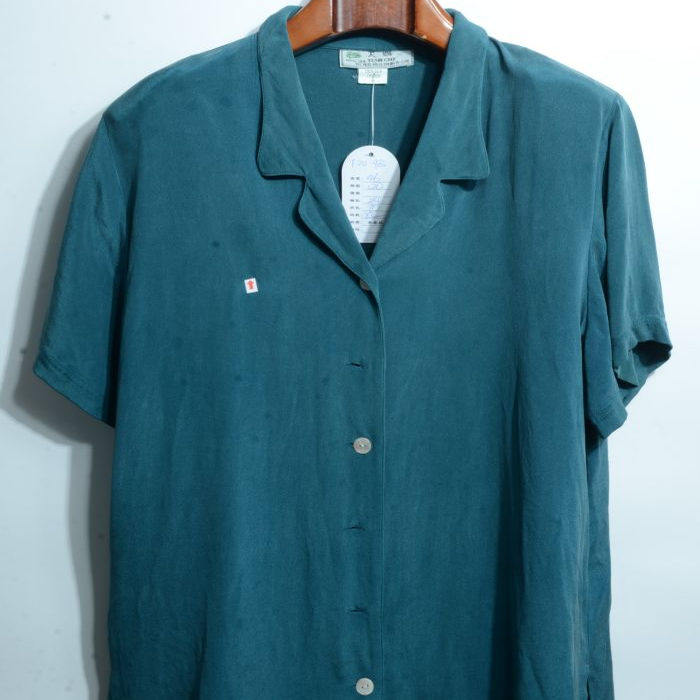 瑕疵vintage古着女装夏季真丝桑蚕丝短袖上衣套头F20